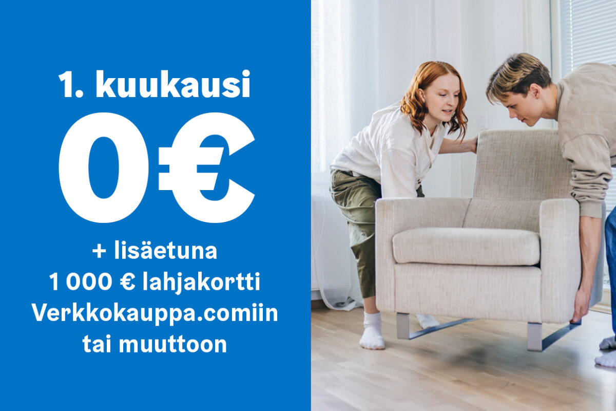 Tarjolla on hyvä valikoima heti vapaita koteja, joihin pääsee muuttamaan nopeasti – ja joissa voi asua huoletta pitkään. Muutto siis onnistuu ilman pitkää odottelua, ja vastikkeesta säästyvät rahat voi käyttää vaikka kesälomalla reissaamiseen. Kampanjaedut koskevat vain erikseen merkittyjä, muuttovalmiita asuntoja.
