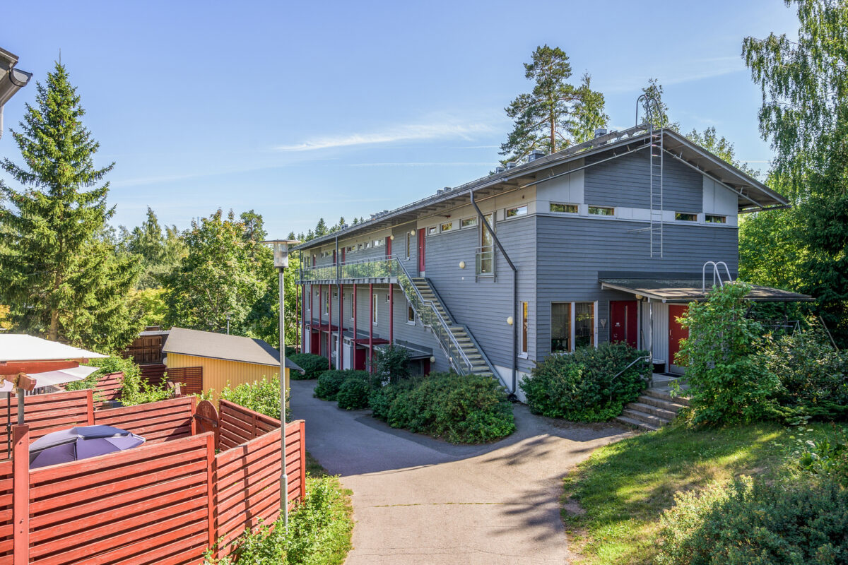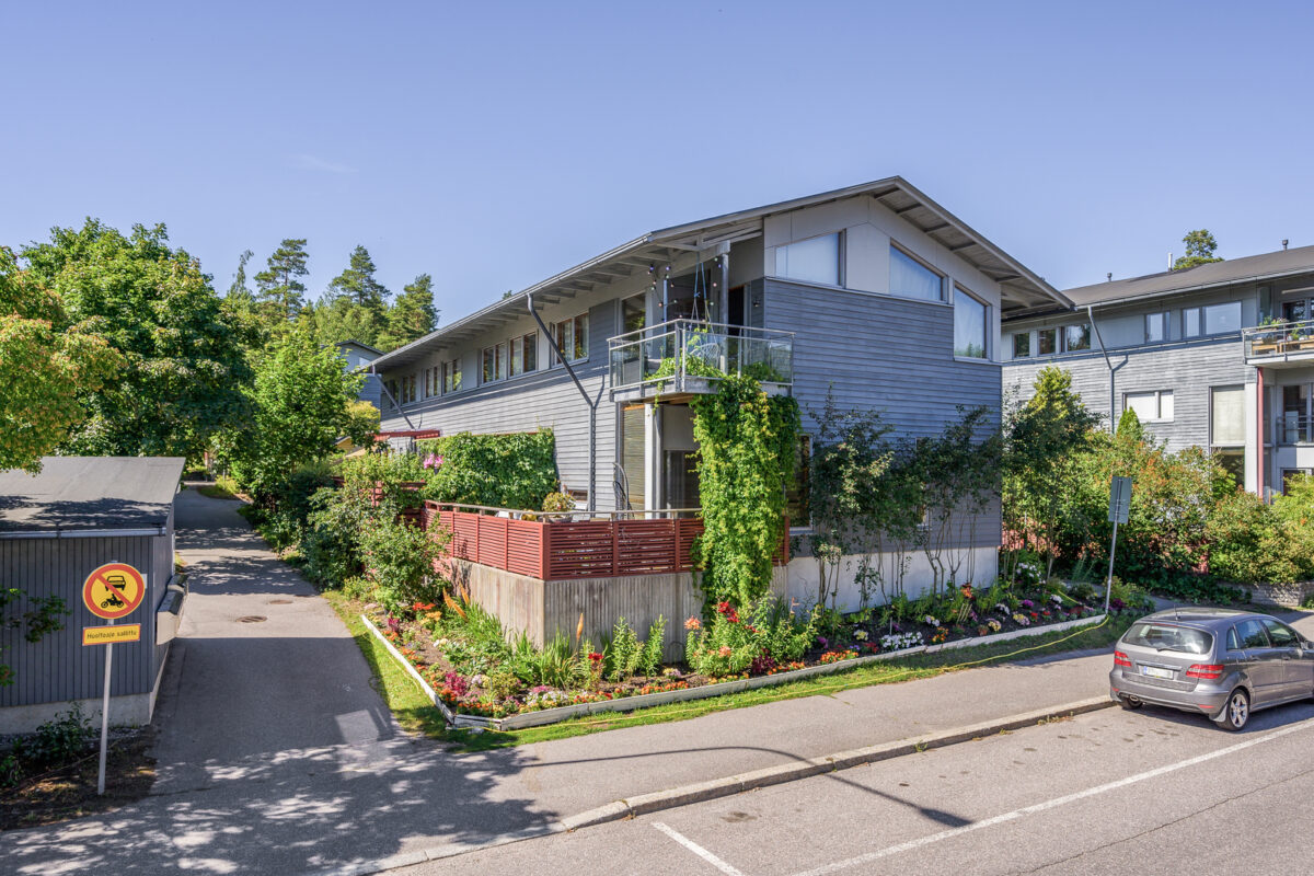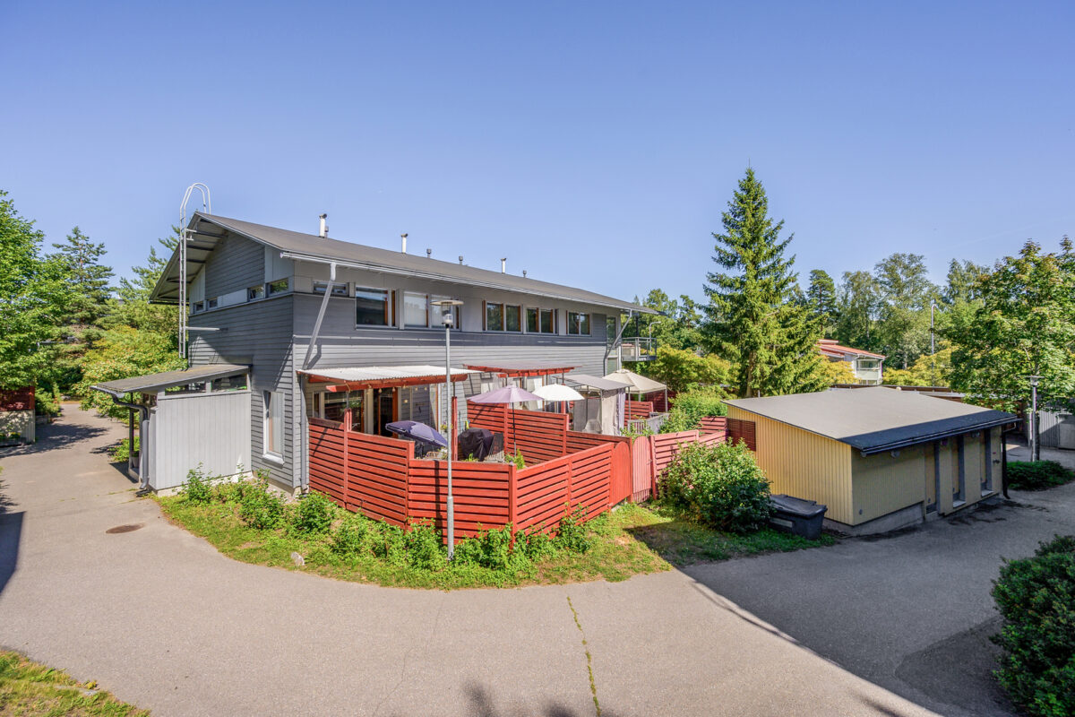 Haso Hallainvuorentie 9:ssä voit asua kolmikerroksisessa hyvin rivitalomaisessa kerrostalossa tai kaksitasoisessa rivitalossa. Kolmikerroksisessa rakennuksessa on kahdessa alemmassa kerroksessa kaksitasoisia rivitalomaisia asuntoja ja kolmannessa kerroksessa pienempiä yksikerroksisia asuntoja.