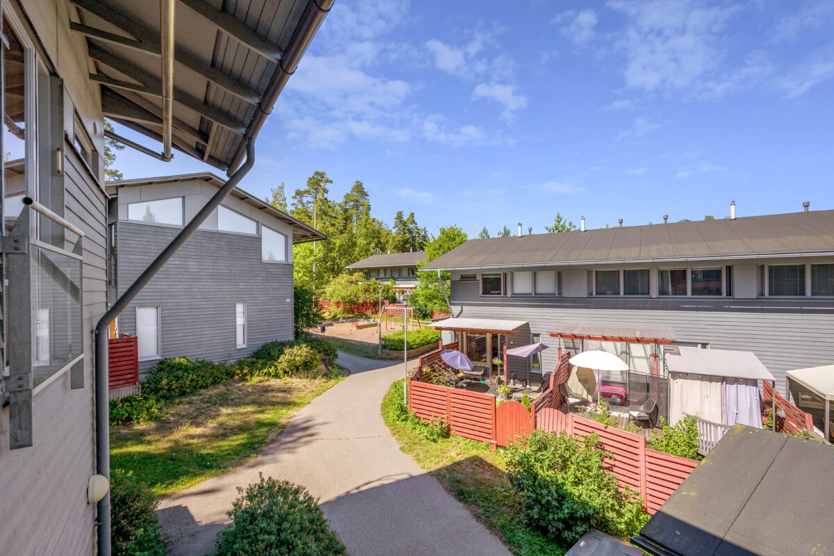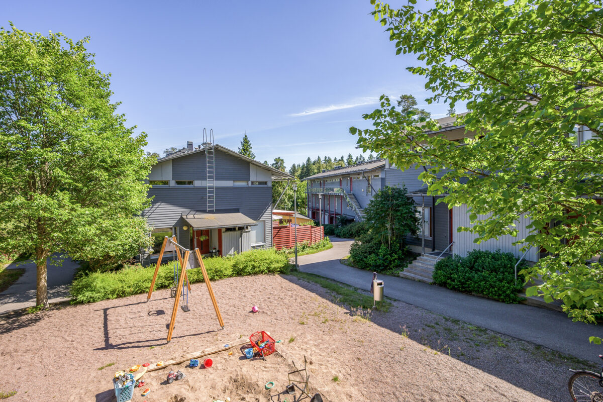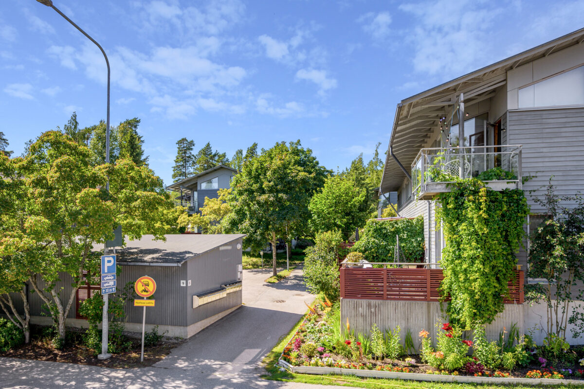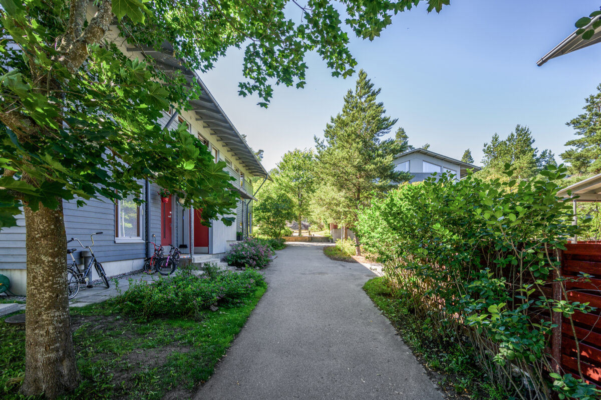 Haso Hallainvuorentie 9:ssä voit asua kolmikerroksisessa hyvin rivitalomaisessa kerrostalossa tai kaksitasoisessa rivitalossa. Kolmikerroksisessa rakennuksessa on kahdessa alemmassa kerroksessa kaksitasoisia rivitalomaisia asuntoja ja kolmannessa kerroksessa pienempiä yksikerroksisia asuntoja.