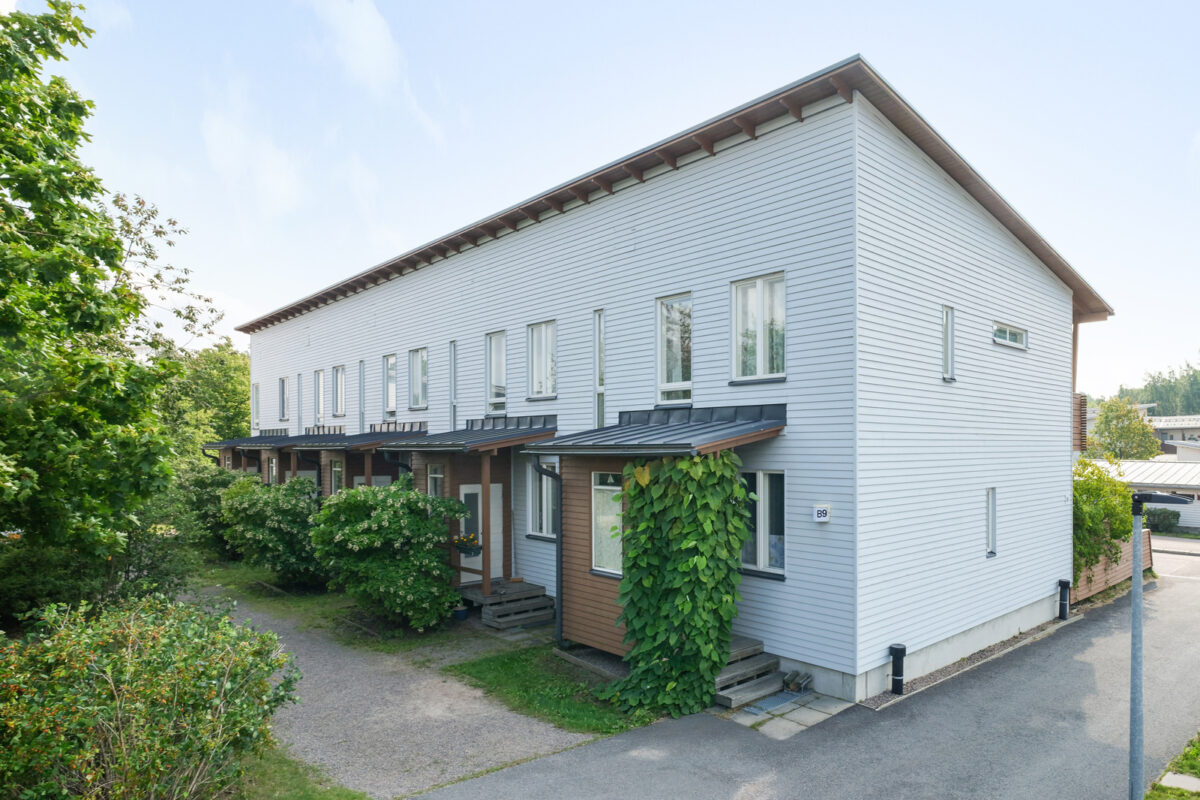 Metroasemalle ja palveluihin on vain noin puolentoista kilometrin matka ja bussit kulkevat viiden minuutin kävelymatkan päässä kotiovelta. Näissä kodikkaissa kaksikerroksissa asunnoissa (paitsi toisen kerroksen asunto D25) on oma sauna, asuntopiha ja parveke. Pihoilla on laatoilla päällystetty terassi sekä puurakenteinen terassi.