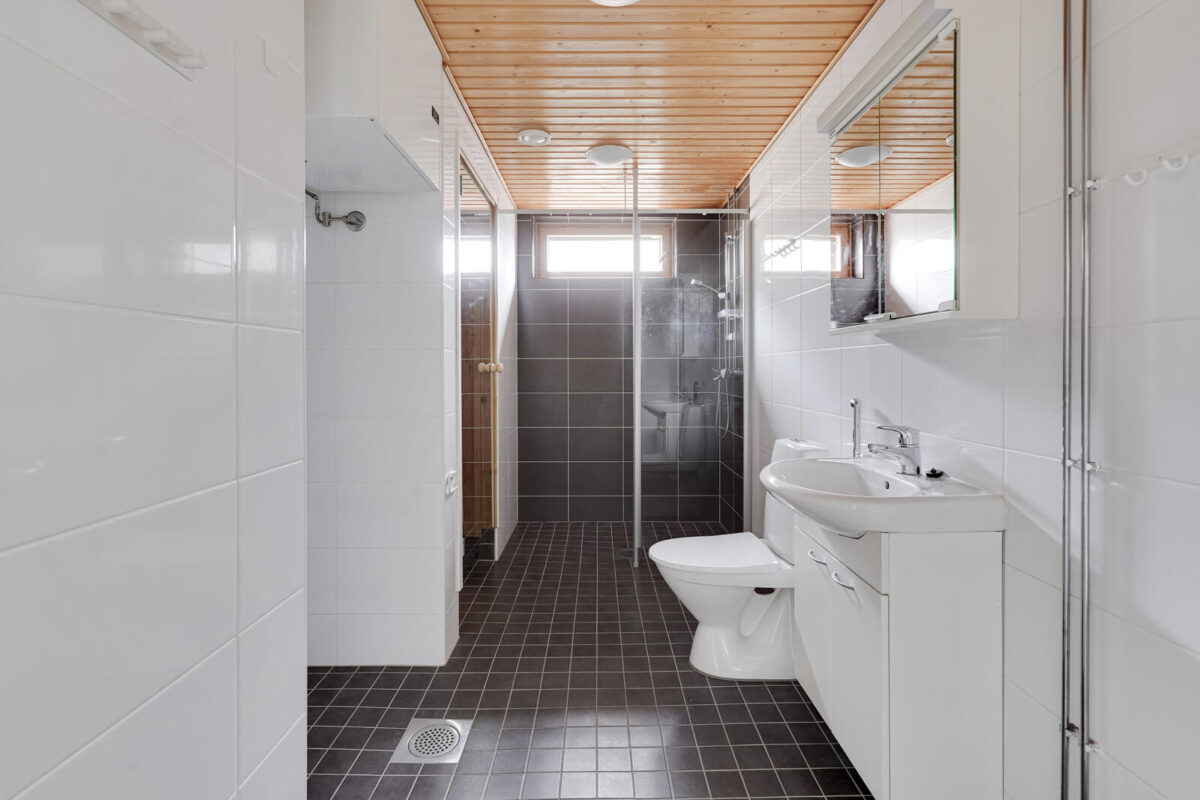 Kylpyhuoneosastolla sijaitsevat kylpyhuone, sauna sekä erillinen WC, jotka tekevät arjesta sujuvaa erityisesti perheelle. Lisäksi asunnossa on vaatehuone, joka tarjoaa runsaasti säilytystilaa.