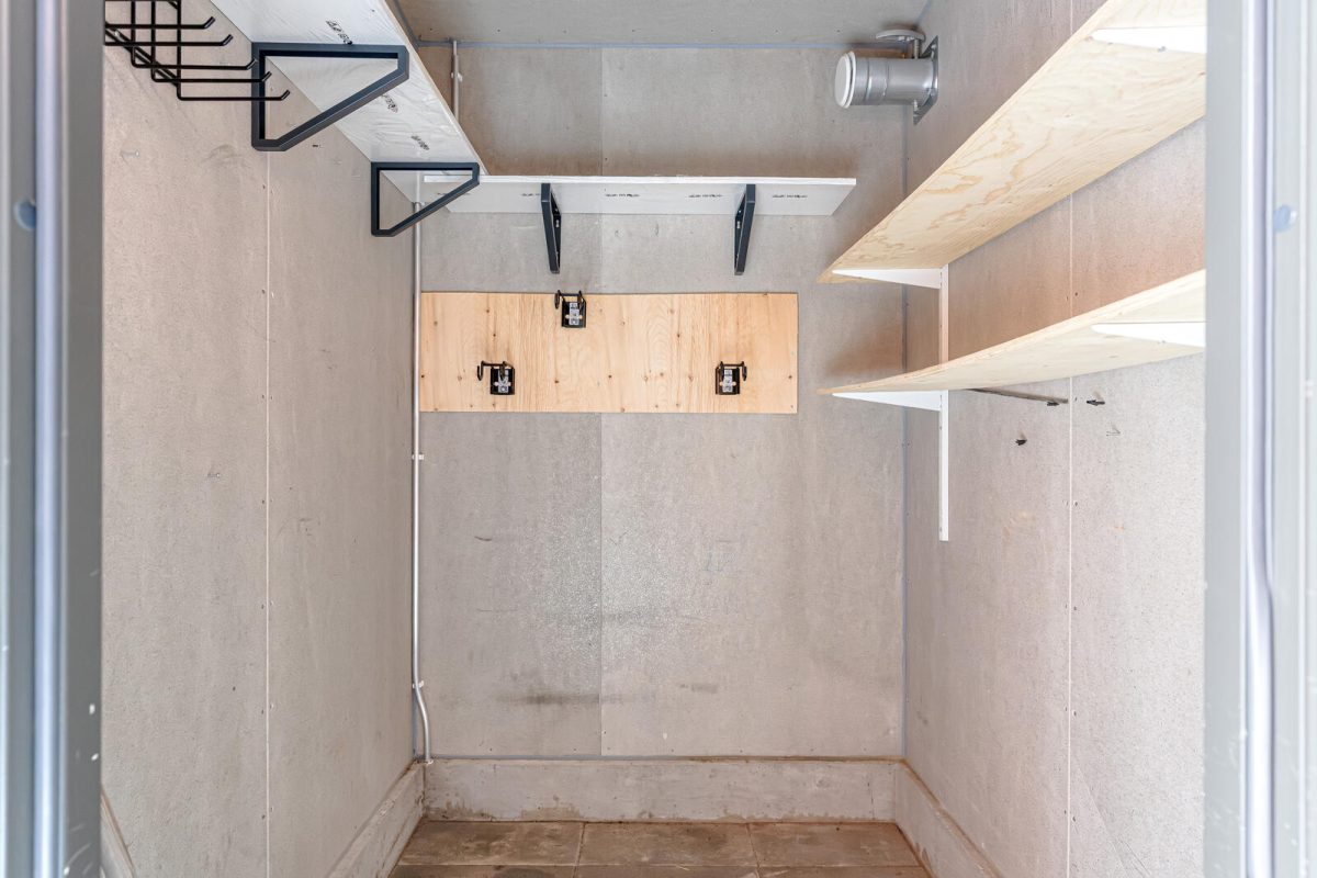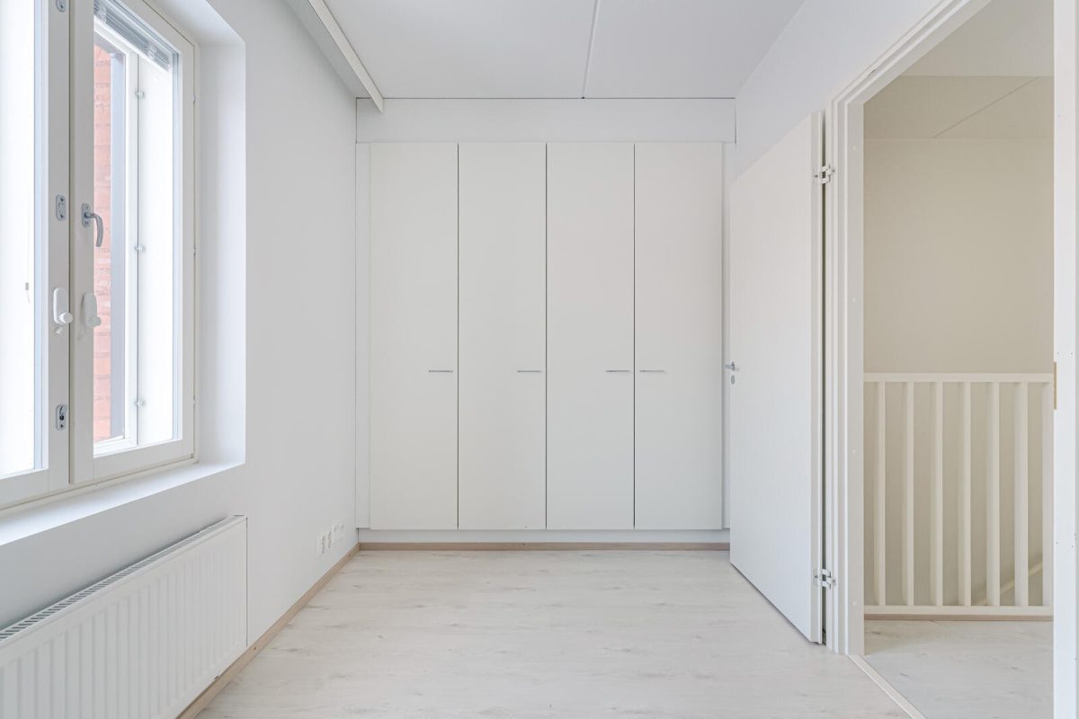 Säilytystilat on suunniteltu lapsiperheen tarpeisiin: makuuhuoneissa on kiinteät kaapistot ja ulko-oven edessä oma varasto, jonne mahtuvat niin polkupyörät, pelivälineet kuin harrastuskamatkin ilman jatkuvaa eteisessä kompastelua.