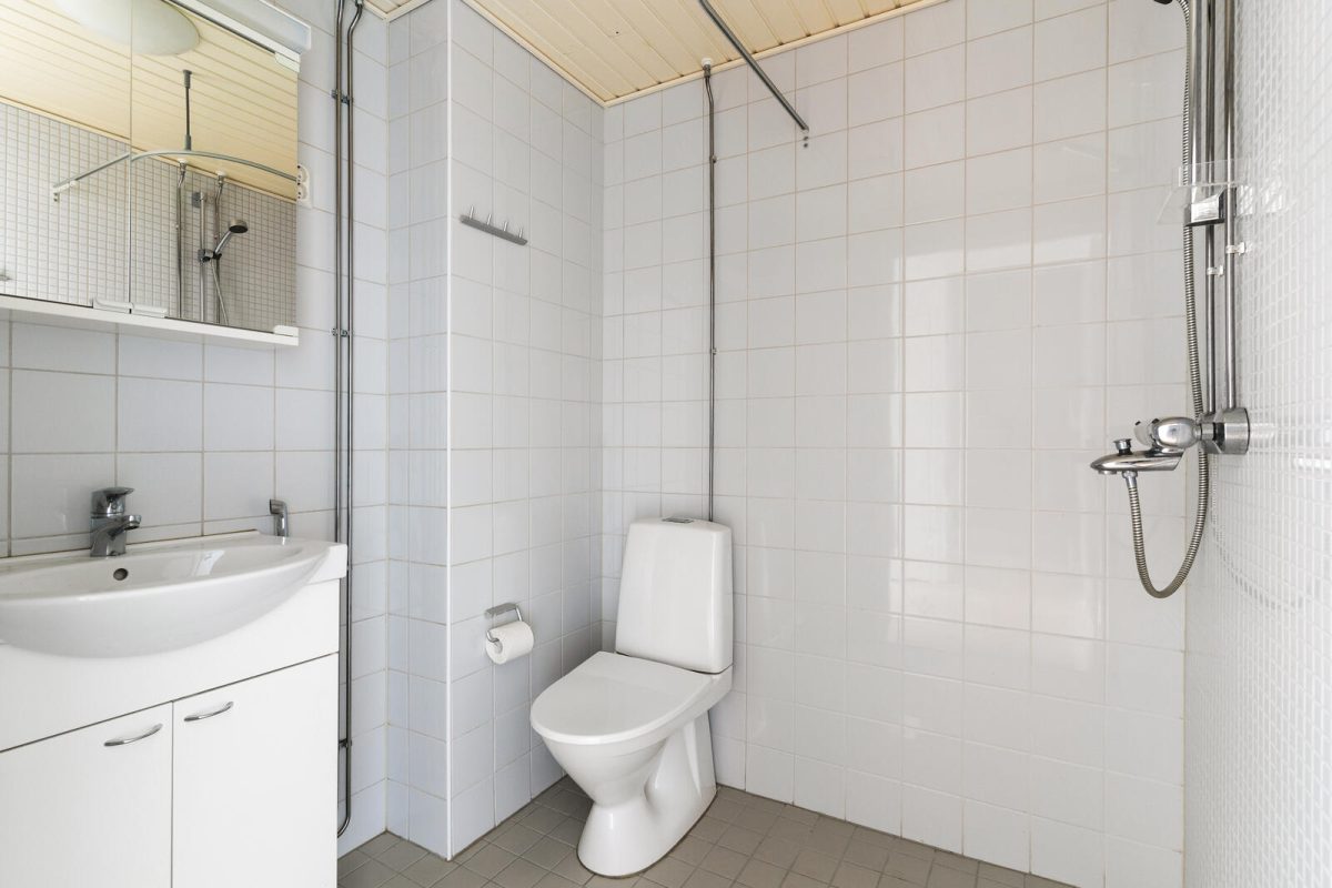 Tämä viihtyisä ja valoisa rivitaloasunto tarjoaa käytännöllisen pohjaratkaisun kahdessa kerroksessa. Makuuhuoneet sijoittuvat yläkertaan, mikä tuo luonnollista rauhaa ja selkeyttää arjen tilankäyttöä. Toisesta makuuhuoneesta löytyy tilava vaatehuone, toisessa on käytännölliset kaapistot.