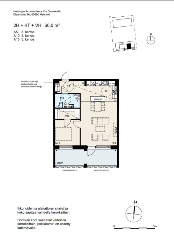 Asuntojen lattiat ovat laminaattia ja kylpyhuoneissa on keraaminen laatoitus. Jokaisessa asunnossa on lasitettu parveke, joka tuo asuntoihin ilmavuutta ja joustavuutta.