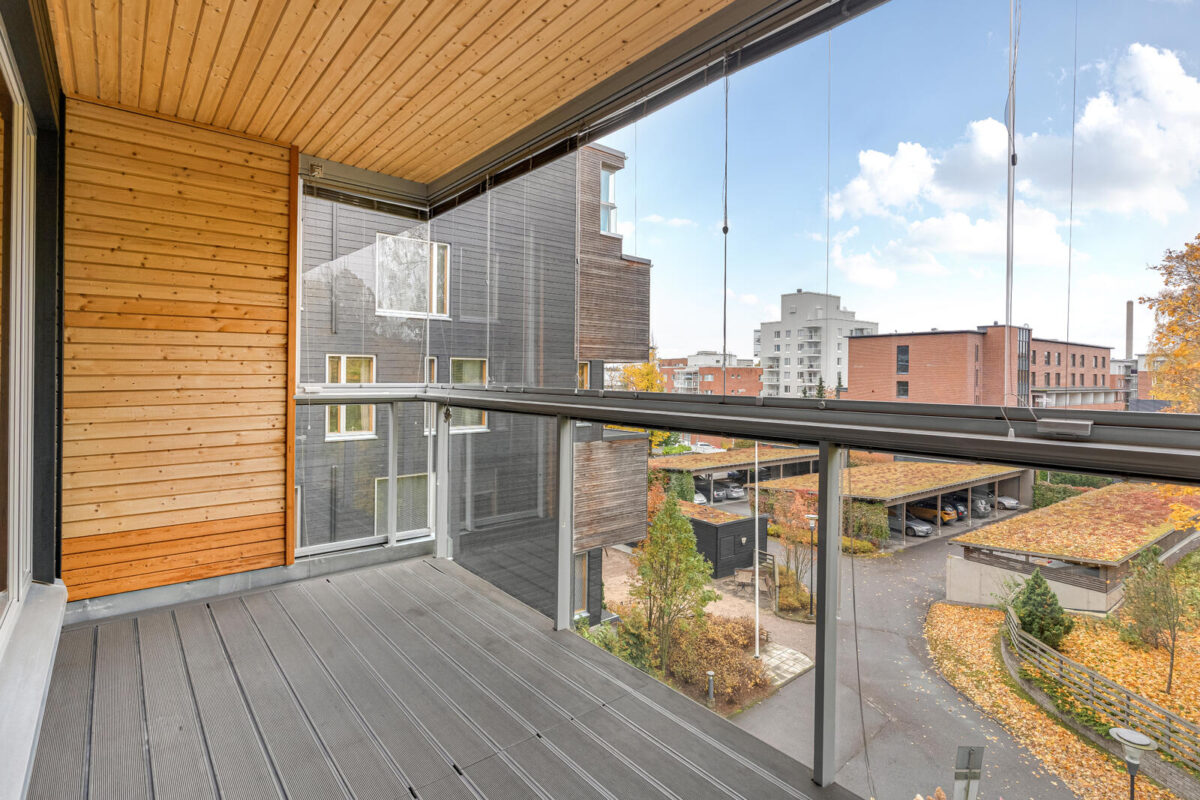 Viihtyisä ja tilava neljännen kerroksen kolmio vapautumassa syksyllä. Asunnon parveke on lasitettu ja puurakenteinen. Asuintiloissa tammi- tai saarniparkettilattiat ja kylpyhuoneissa laatoitus.