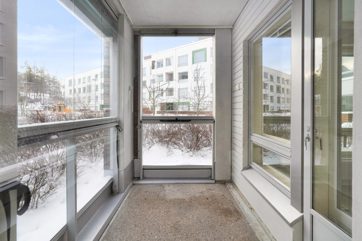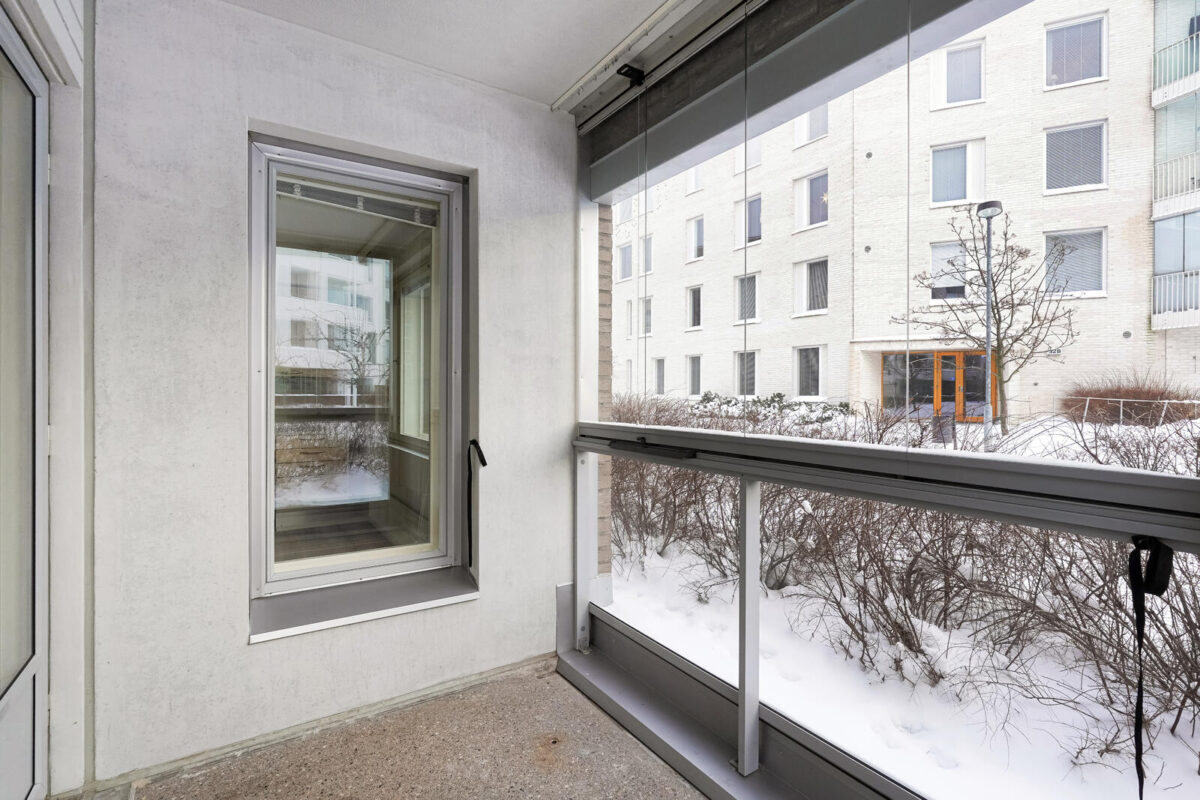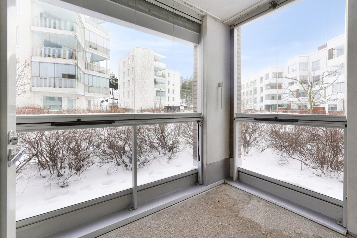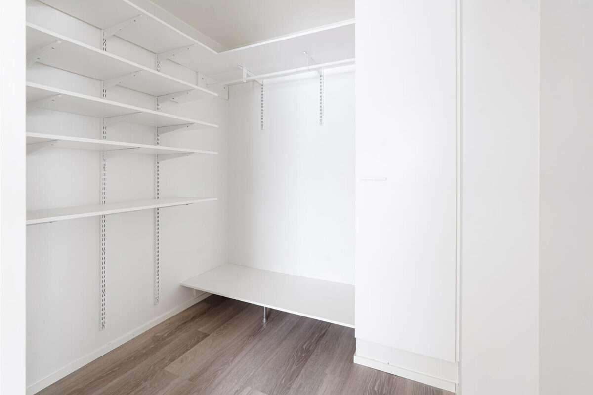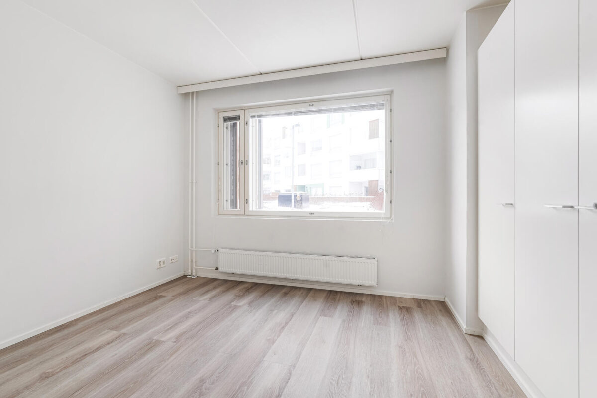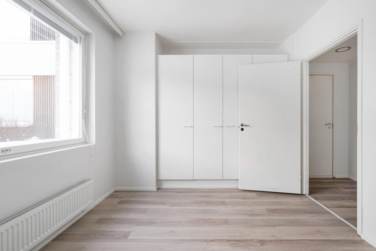 Asunnossa on hyvän kokoinen makuuhuone, viihtyisä parveke sekä lisäsäilytystilaa tuova vaatehuone. Keittiötilaan mahtuu hyvin ruokapöytä.
