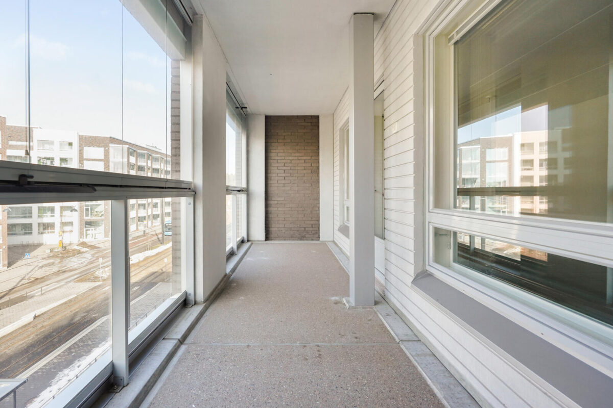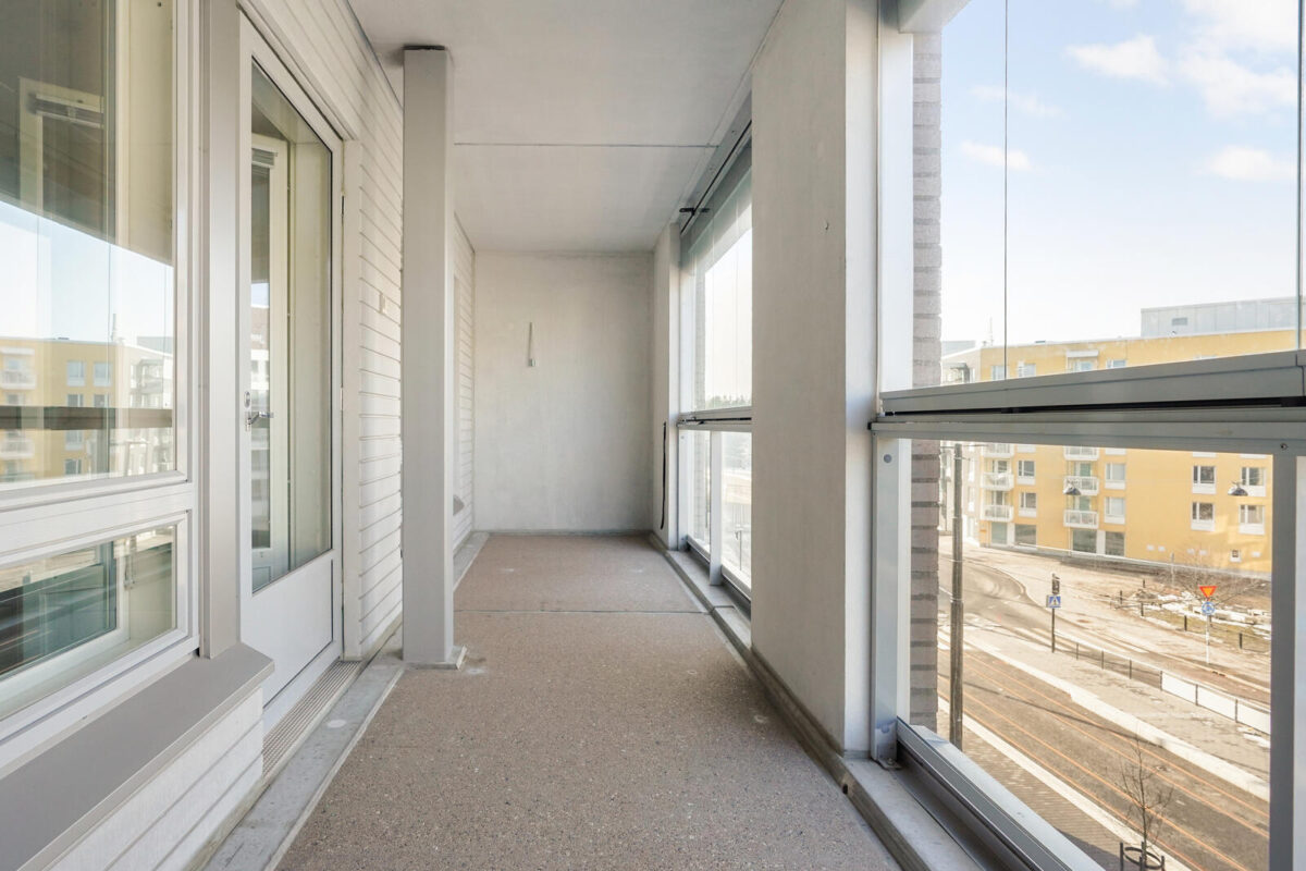 Asunnossa on tilava olohuone-avokeittiötila sekä kaksi hyvän kokoista makuuhuonetta. Hukkaneliöt on minimoitu. Suuri parveke tuo lisämukavuutta arkeen, ja valoa asuntoon tulee kahdesta ilmansuunnasta.