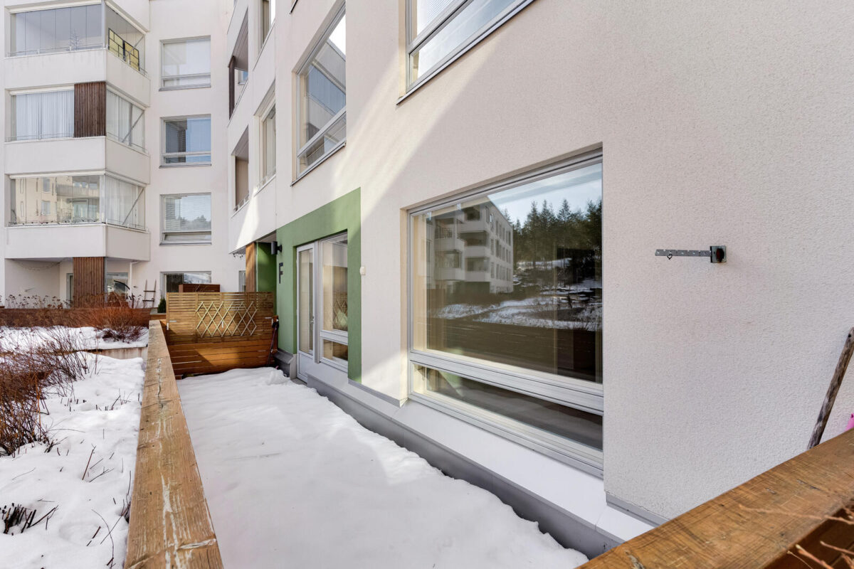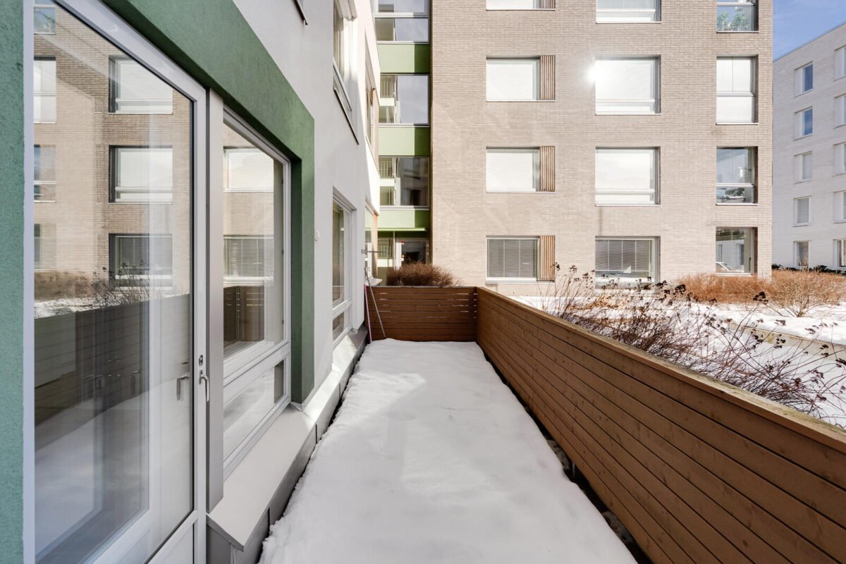 Asunnossa on tilava makuuhuone ja viihtyisä olohuone-keittiötila. Asuntoon kuuluu oma sauna sekä esteetön lasitettu parveke, johon mahtuu hyvin kalusteita.
