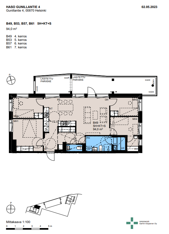 Kuudennen kerroksen valoisa koti avautuu selkeällä ja käytännöllisellä pohjaratkaisulla, jossa jokainen neliö on suunniteltu arjen sujuvuutta ajatellen. Neljä makuuhuonetta mahdollistavat joustavat ratkaisut niin perheelle, etätyöhön kuin harrastustiloiksi. Olohuone ja keittiö muodostavat yhtenäisen, avaran kokonaisuuden, jossa on helppo viettää aikaa yhdessä ja järjestää isompiakin illanviettoja.