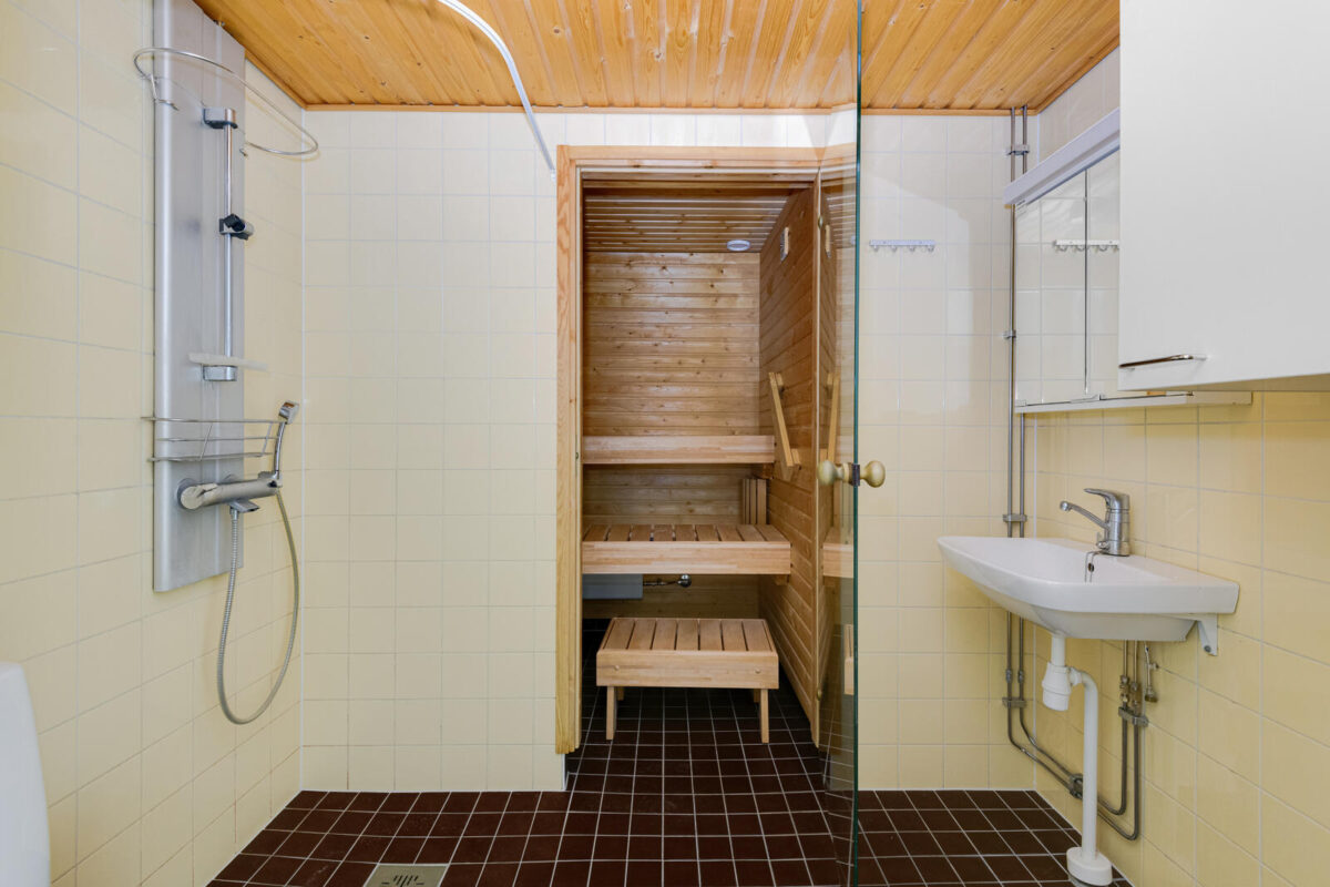 Tämän kodin yksi vahvuuksista on oma sauna, joka tuo mukavuutta arkeen ja mahdollistaa rentoutumisen omassa rauhassa. Lisäksi asuntoon kuuluu terassi, jolta voi nauttia raittiista ilmasta ja tuoda asumiseen lisätilan tuntua kesäisin. Keittotila yhdistyy luontevasti oleskeluun, ja makuuhuoneen rauhallinen sijainti tukee levollista yöunta.