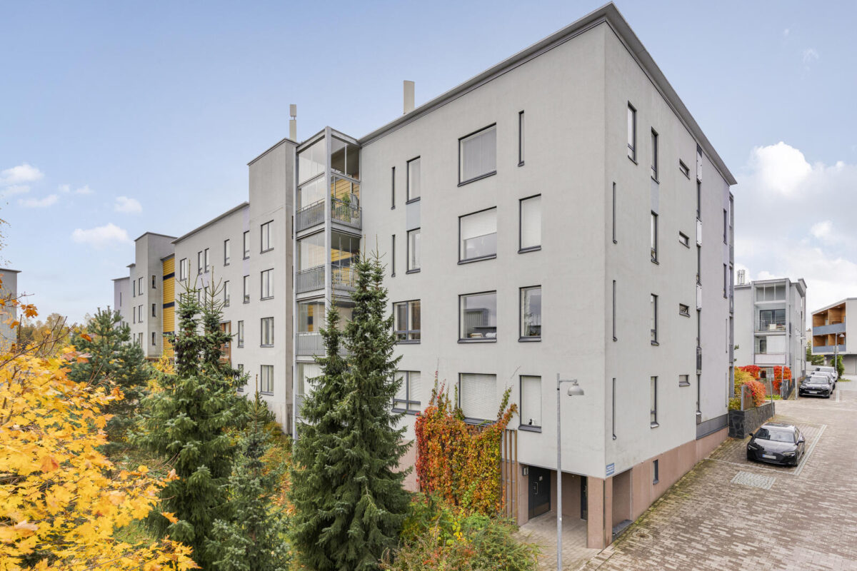 Viikinmäki ihastuttaa vehreydellään. Selkeälinjainen ja vaaleapintainen Haso Henrik Lättiläisen katu 6 tarjoaa 56 asumisoikeuskotia, joista osa sijaitsee kerrostalossa ja osa osittain kolmikerroksissa rivitalossa.