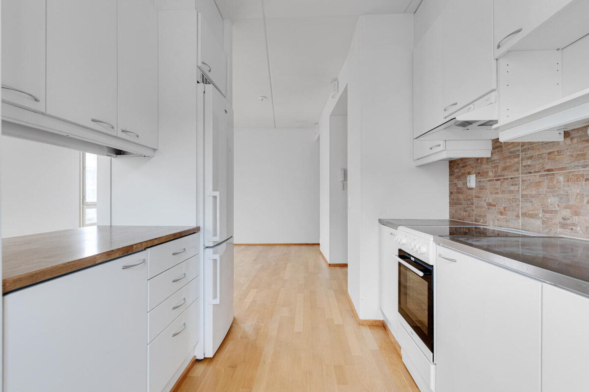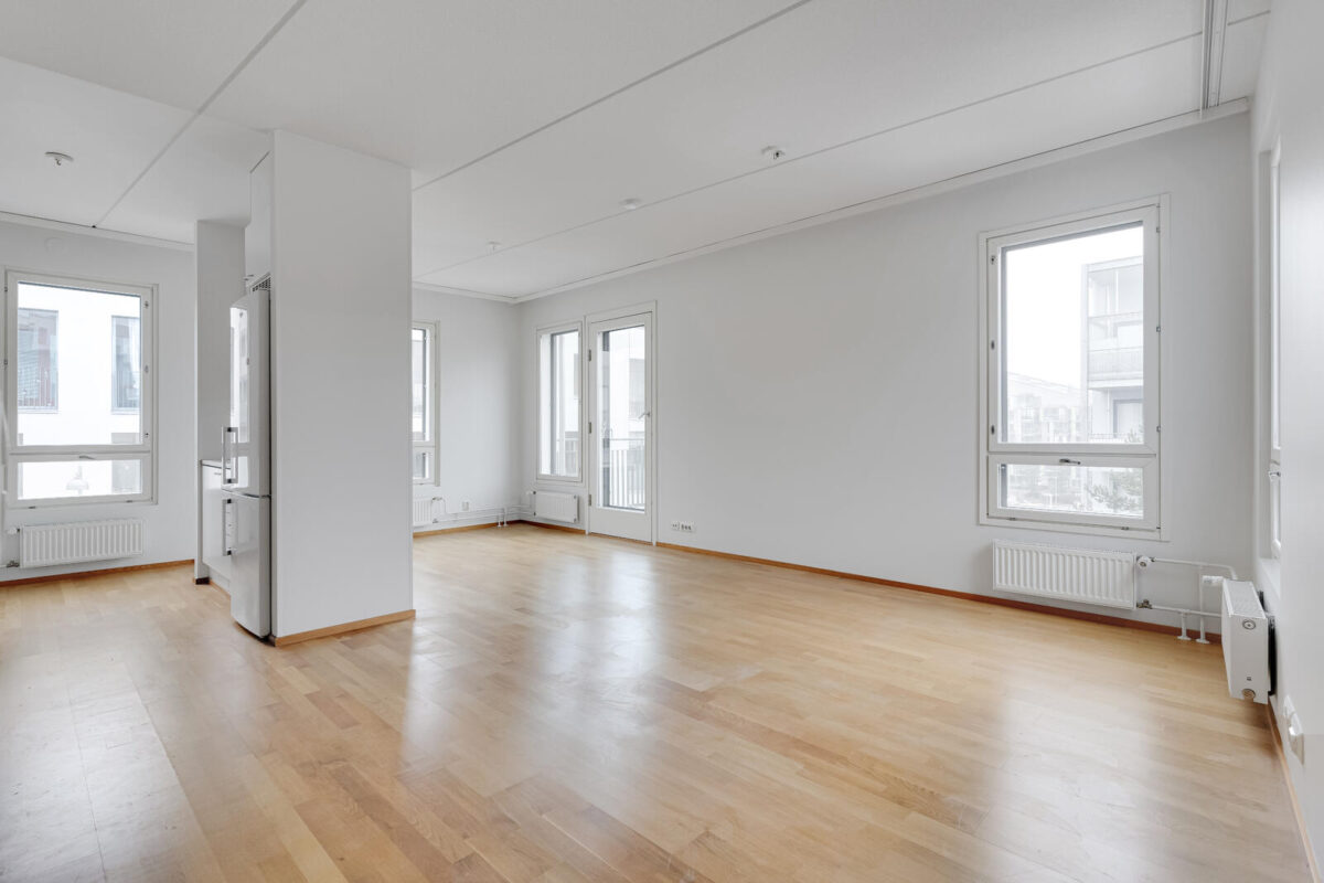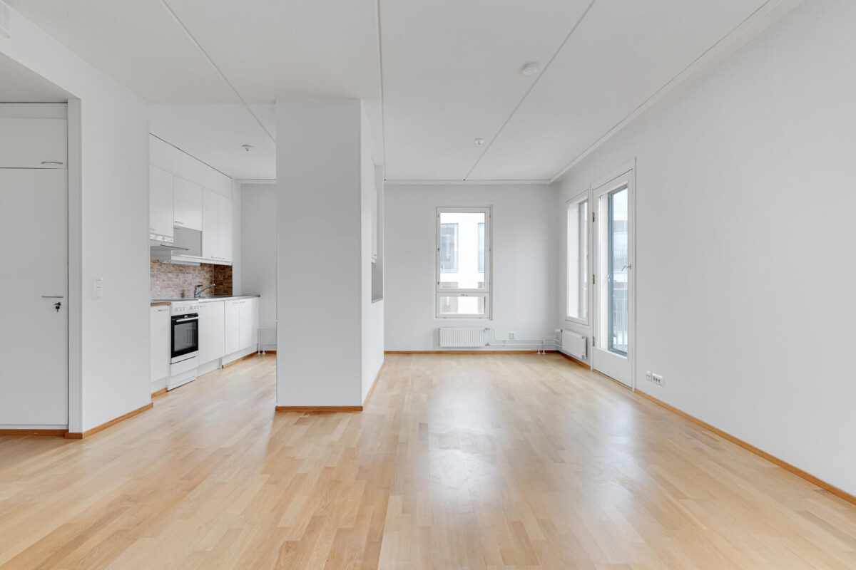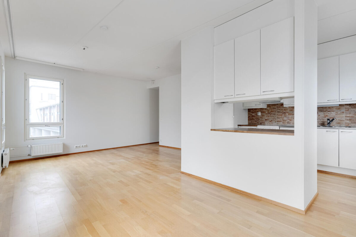 Tässä kolmannen kerroksen kodissa Viikinmäessä arki sujuu mutkattomasti. 73,5 m²:n kolmio yhdistää valoisan olohuoneen ja keittiön viihtyisäksi yhteiseksi tilaksi, jossa aamuhetket ja illan rentoutuminen sujuvat helposti. Kaksi makuuhuonetta tarjoavat rauhalliset omat tilat niin nukkumiseen kuin etätyöhön.