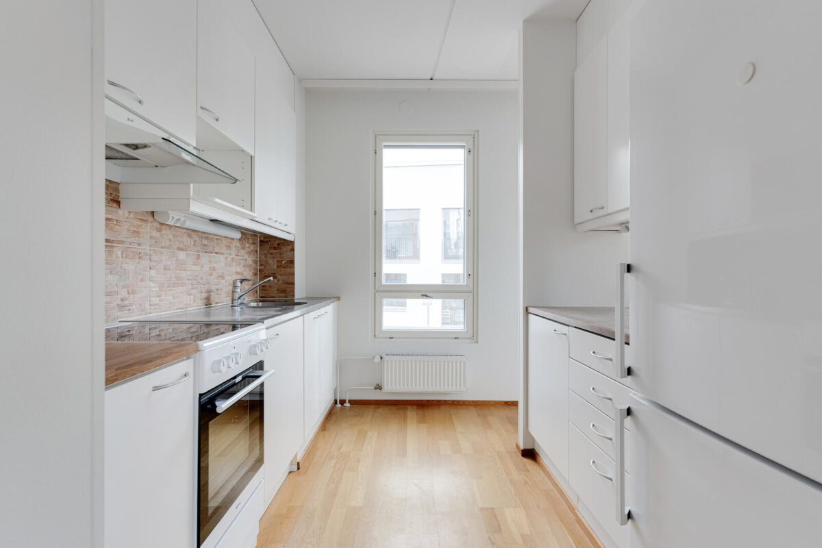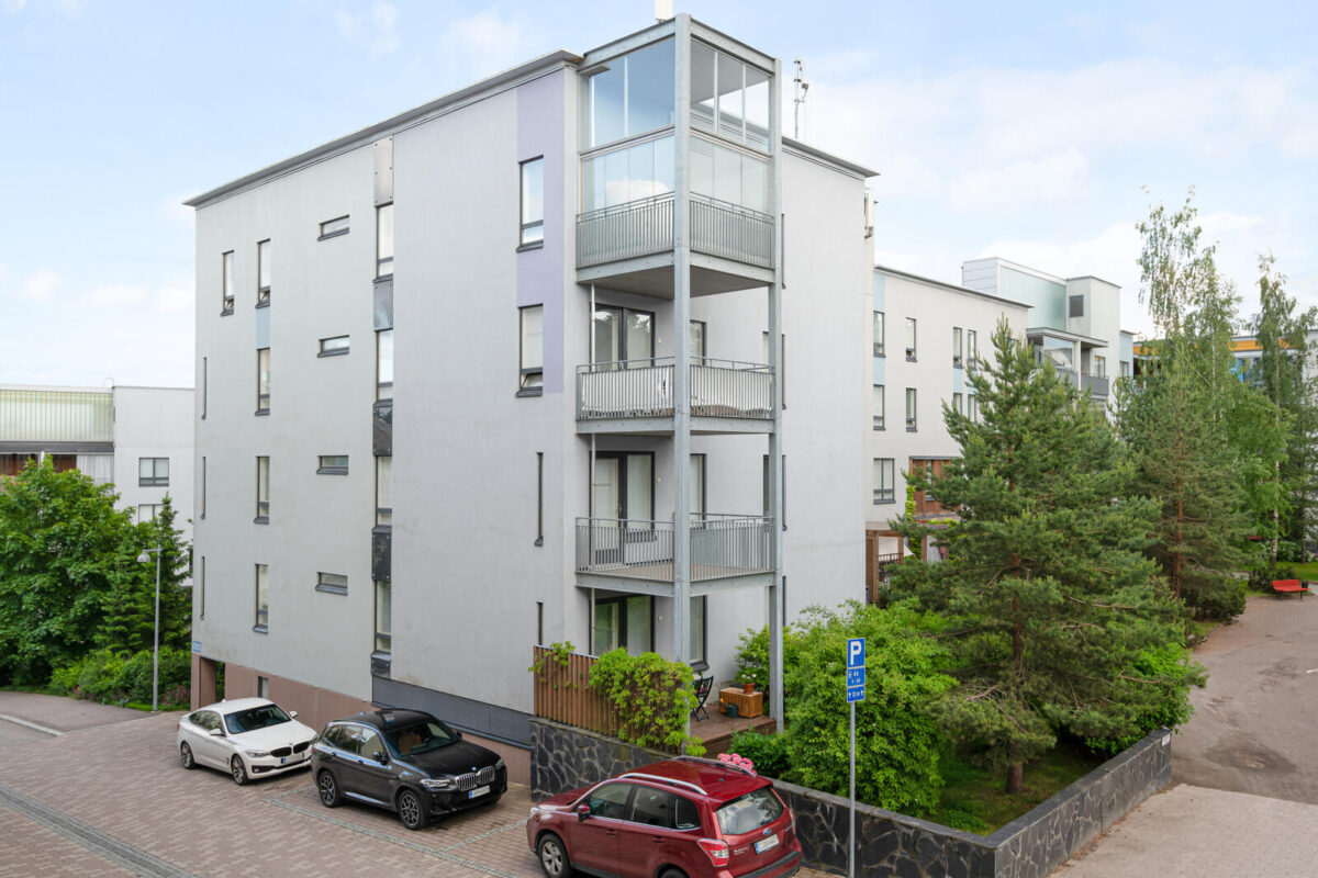 Tämä koti sopii pariskunnalle tai pienelle perheelle, joka haluaa valoisat, toimivat tilat, oman saunan ja parvekkeen osaksi arkea viihtyisässä Viikinmäessä.