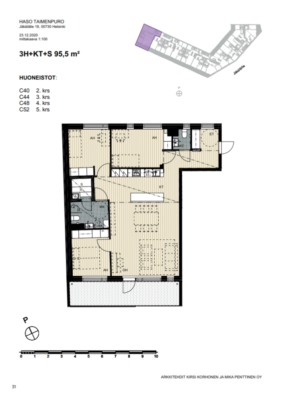 Tämä 95,5 m²:n kokoinen koti sijaitsee talon 4. kerroksessa ja hurmaa erityisesti avaruudellaan ja toimivalla pohjaratkaisullaan. Kodin sydämen muodostaa suuri olohuoneen ja keittiön yhtenäinen tila, jossa on runsaasti tilaa niin arjen yhdessäololle kuin suuremmillekin illanvietoille. Keittiön saareke tuo lisää työskentely- ja säilytystilaa sekä tekee tilasta luontevan kokoontumispaikan.