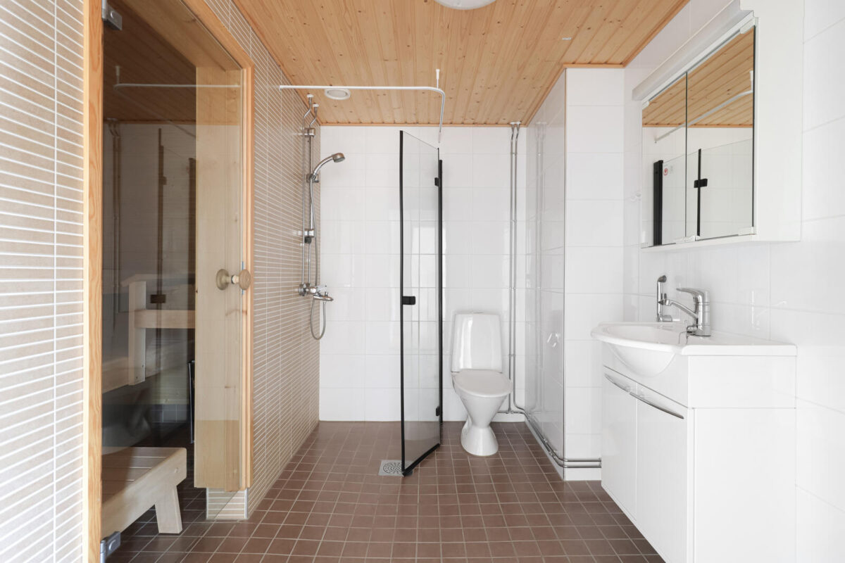 Arkea ilahduttaa oma sauna, jossa on mukava rentoutua omassa rauhassa pitkän päivän jälkeen. Lisäksi lasitettu parveke tarjoaa omaa lisätilaa niin aamukahville kuin iltahetkiin – se toimii kuin ylimääräisenä huoneena keväästä pitkälle syksyyn. Asunnon ehdoton plussa on makuuhuoneen tilava vaatehuone.