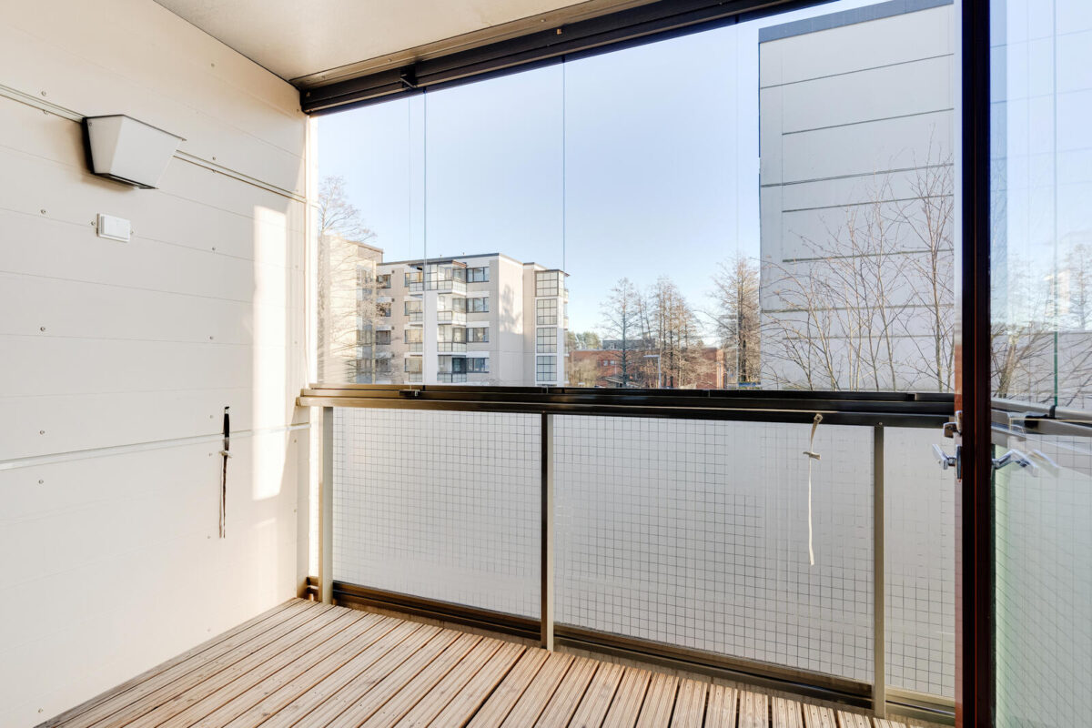 Asunnon lasitettu parveke tarjoaa mukavan lisätilan ja oman pienen rauhoittumispaikan – olipa kyse kahvihetkestä, lehden lukemisesta tai vain hiljaisesta omasta tuokiosta. Parveketta voi käyttää pitkälle syksyyn, mikä lisää asumismukavuutta huomattavasti.