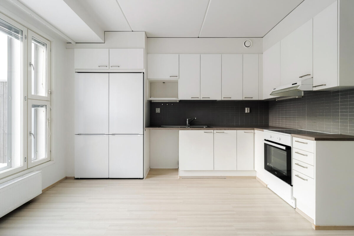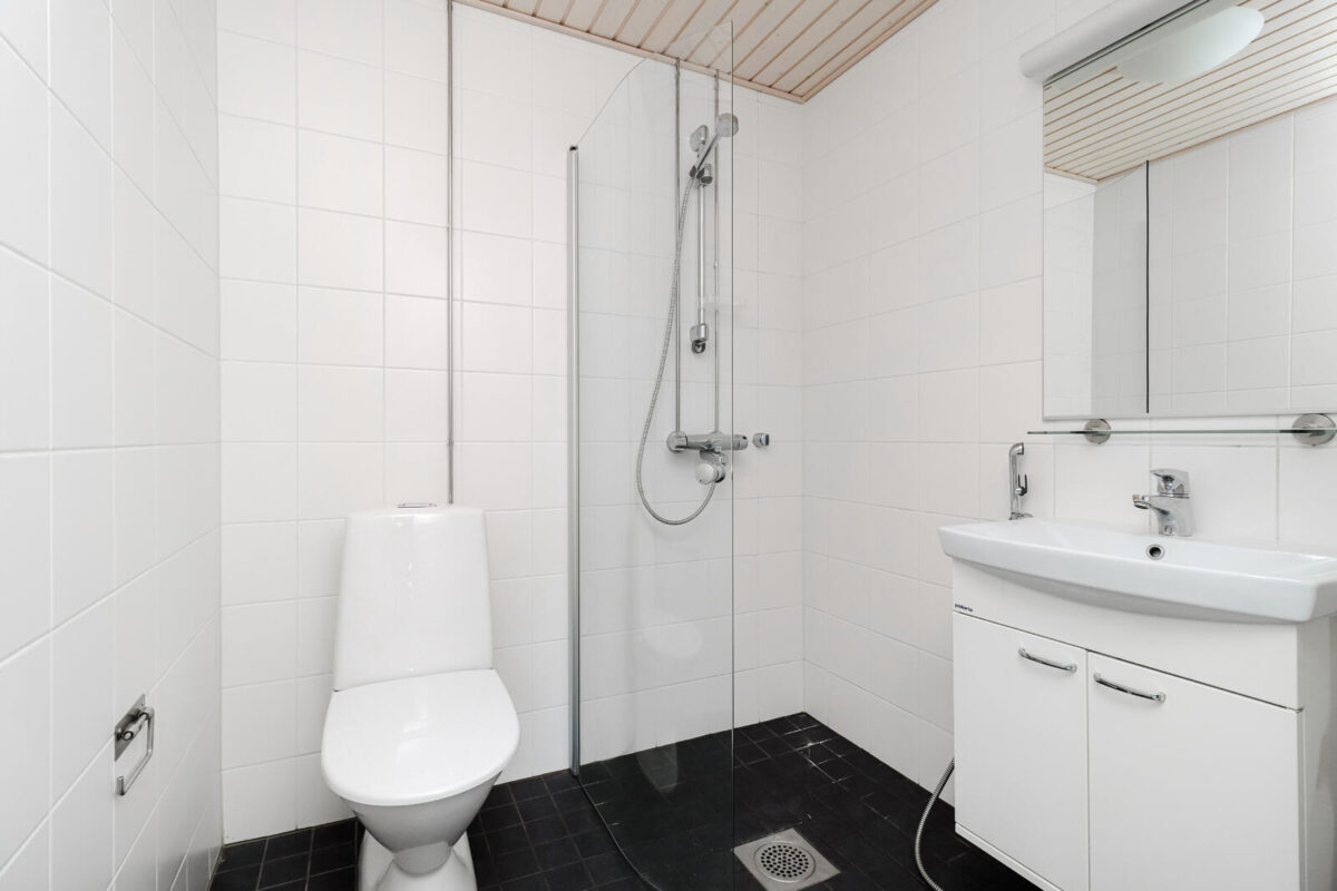 Asunnoissa on laminaattilattiat ja wc- ja kylpytiloissa keraaminen laatta.