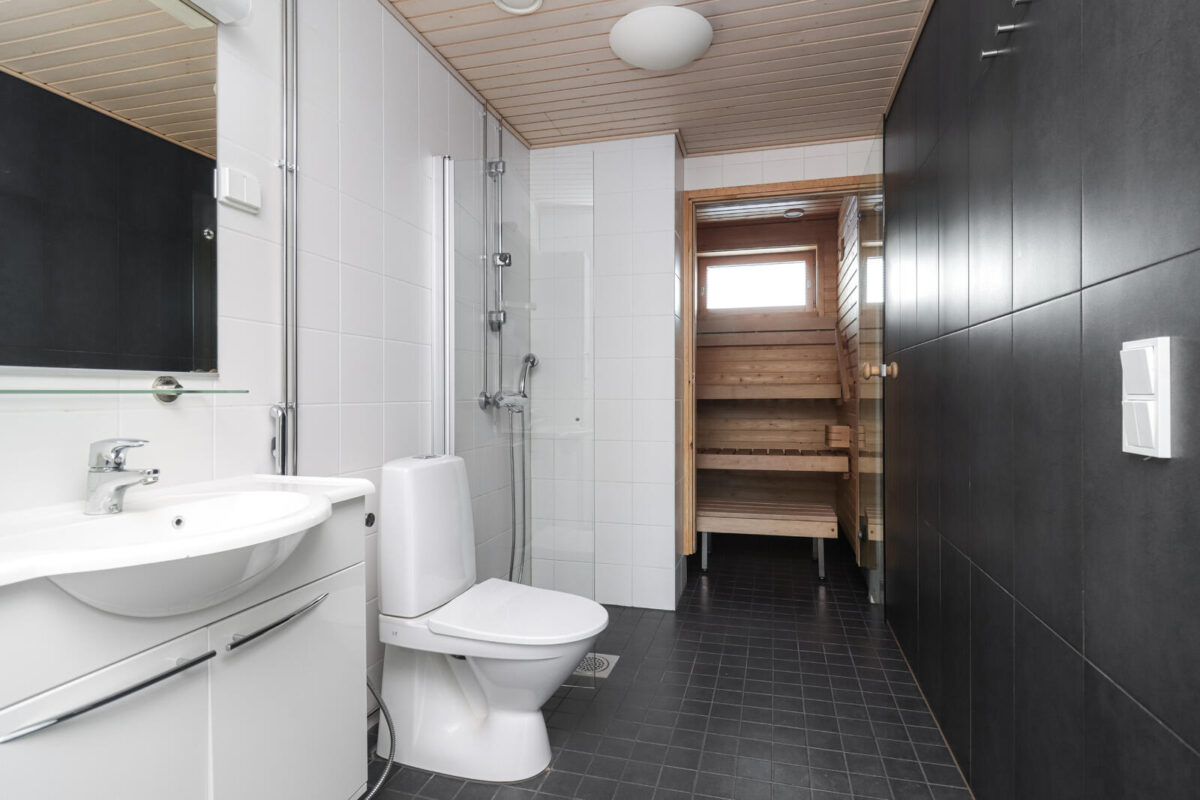 Asunnossa on oma sauna, terassi sekä pieni piha, jotka tuovat lisätilaa ja viihtyisyyttä asumiseen. Lisäksi asunnossa on ranskalainen parveke. Kahteen kerrokseen jakautuvat tilat mahdollistavat joustavan tilankäytön niin pariskunnalle kuin pienelle perheelle.