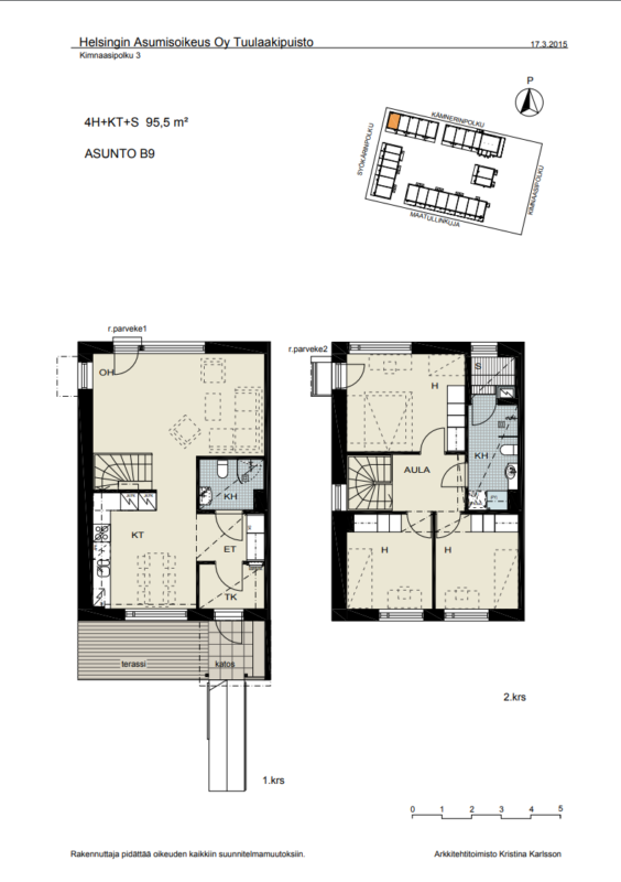 Kaksikerroksinen rivitalokoti viihtyisältä Tapulikaupungin alueelta
