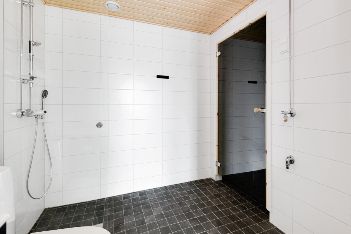 on myös huoneistosauna. Osa ylimmän kerroksen asunnoista jatkuu ullakkokerrokseen.