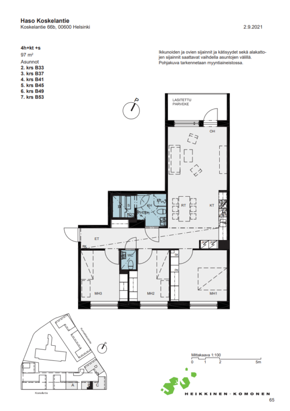 Koskelantie 66 B:n seitsemännessä kerroksessa sijaitseva tilava 97 m²:n neliö tarjoaa toimivan pohjaratkaisun arkeen ja juhlaan. Asunnossa on selkeästi eriytyvät oleskelu- ja makuutilat, mikä tuo mukavuutta perheasumiseen tai tilaa arvostavalle asukkaalle. Ylimmän kerroksen tuntuma lisää rauhallisuutta ja avaruutta.
