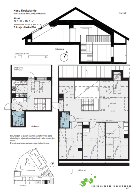 Koskelantie 66b:ssä, rauhallisessa Koskelassa, vapautuu tilava 114,5 m²:n neliö 7. kerroksessa. Tämä kaksitasoinen koti tarjoaa harvinaista väljyyttä ja selkeän jaon arjen toiminnoille: alakerta ja yläkerta luovat runsaasti muunneltavaa tilaa niin perhe-elämään kuin etätyöhönkin.