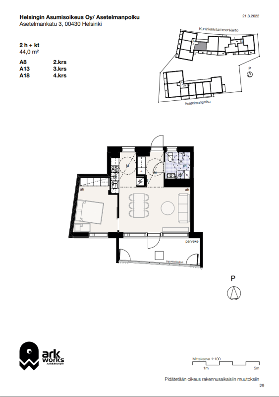 Haso Asetelmankatu 3 sijaitsee Kuninkaantammen luonnonläheisessä ympäristössä Keskuspuiston helmassa. Kotitalo koostuu 47 erikokoisesta asumisoikeusasunnosta, joissa pientalomaista asumista korostaa pihayhteys, kaikissa asunnoissa on joko terassi tai parveke. Piha-alue on suunniteltu houkuttelevaksi kaikkina vuodenaikoina.