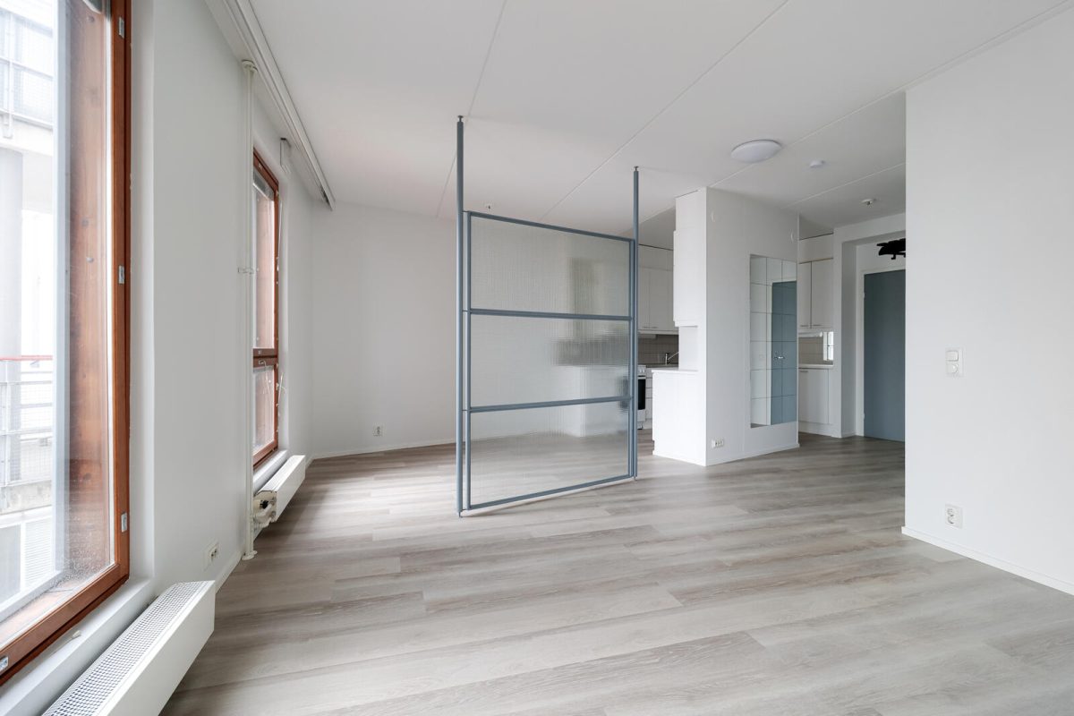 Rauhallinen heti vapaa saunallinen kaksio lasitetulla parvekkeella Marjaniemessä.
