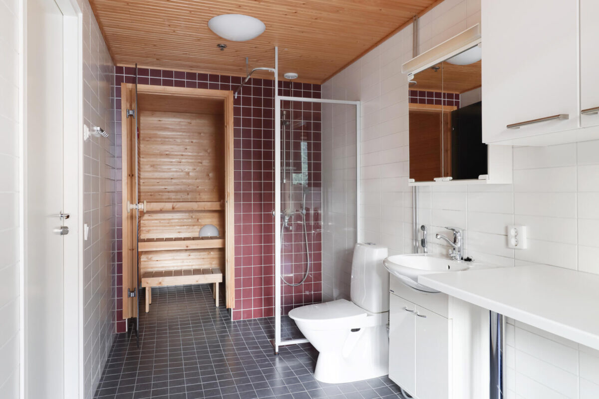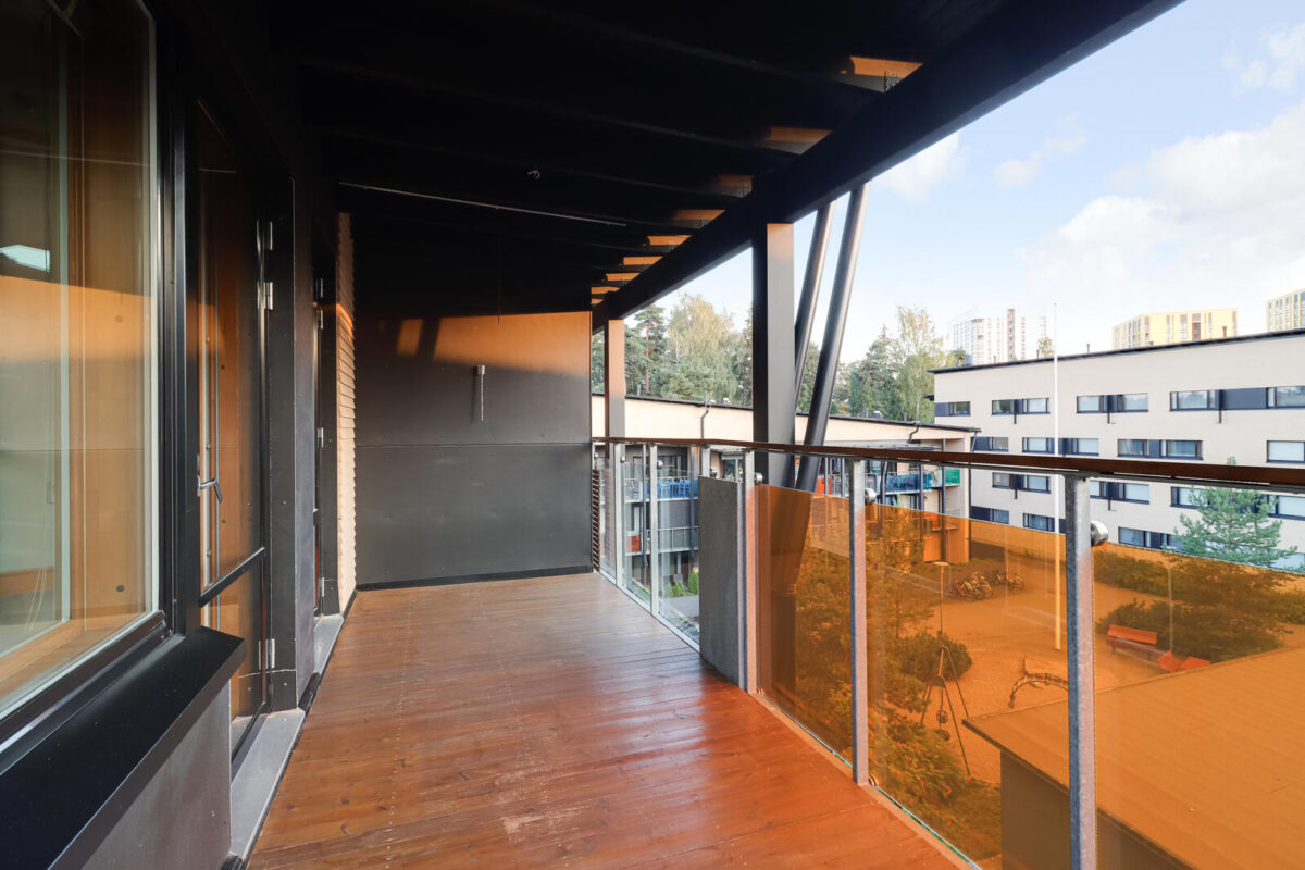 Saunassa on mukava rauhoittua päivän päätteeksi, ja oma parveke tarjoaa ulkotilaa ilman ylimääräistä huoltamista. Parvekkeita ei voi lasittaa, mutta ne toimivat silti mainiona paikkana hengähtää ja nauttia ulkoilmasta.