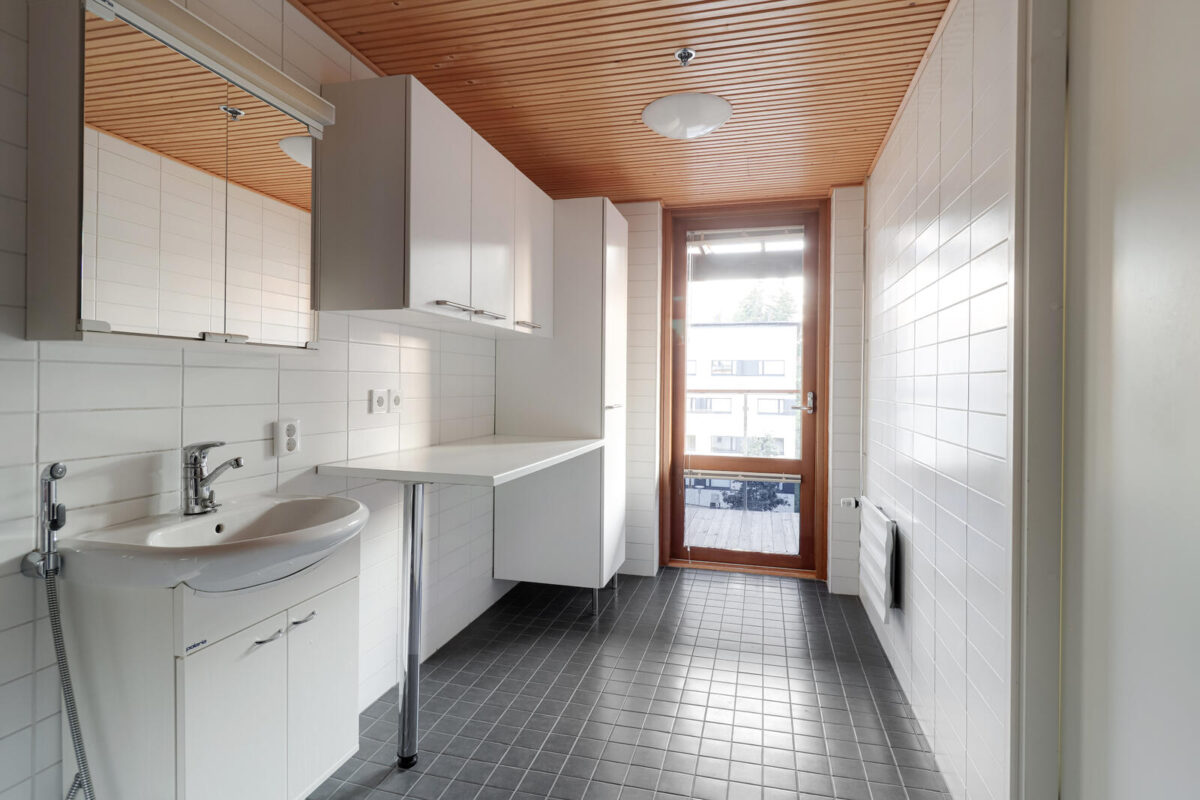 Olohuone ja keittiö muodostavat kodin sydämen, jossa on tilaa yhdessäololle ja perheen omille rutiineille. Kolme makuuhuonetta tarjoavat jokaiselle oman rauhallisen tilan, ja säilytysratkaisut on mietitty käytännöllisesti. Asunnon lattioita koristaa kaunis lautaparketti, ja pesutilojen laatoitus tuo arkeen helppohoitoisuutta ja raikkautta.