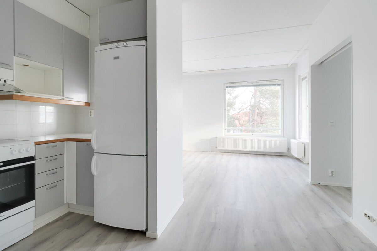 Kolmannen kerroksen valoisa 46-neliöinen koti avautuu käytännölliseen keittiö–oleskelutilaan, jonka jatkeena on oma parveke. Asunnon oma sauna tuo arkeen ripauksen luksusta, ja vuonna 2022 valmistunut kylpyhuoneremontti takaa modernin ja raikkaan ilmeen. Lattioiden vinyylipinta on helppohoitoinen ja ajaton, ja kokonaisuus tuntuu harmoniselta ja toimivalta.