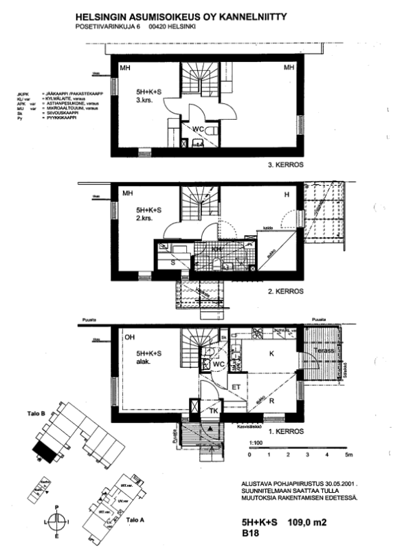 Rivitalon huoneisto B18 on kolmekerroksinen.