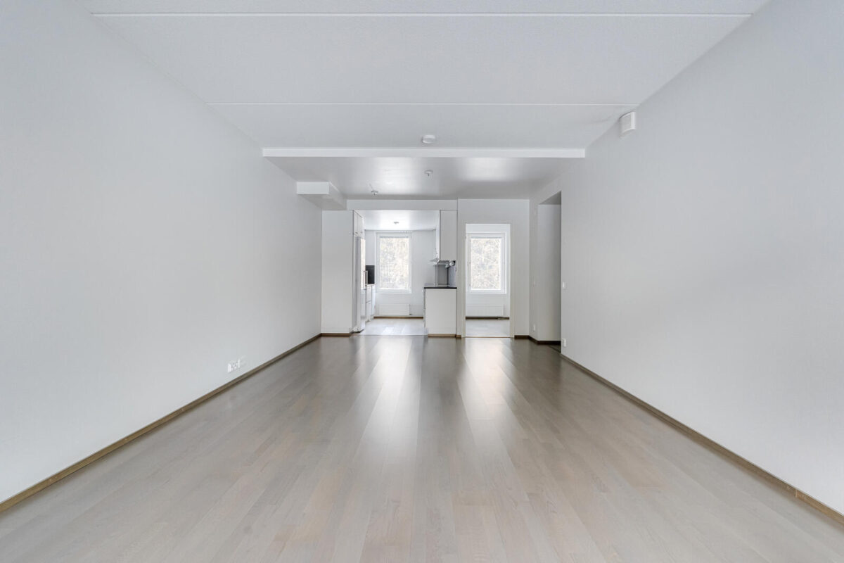 Asuinhuoneiden, eteisen ja keittiön lattioissa on lautaparketti. Kylpyhuoneessa on neutraalin sävyinen keraaminen laatoitus. Pohjaratkaisu sopii hyvin yksinasuvalle tai pariskunnalle.