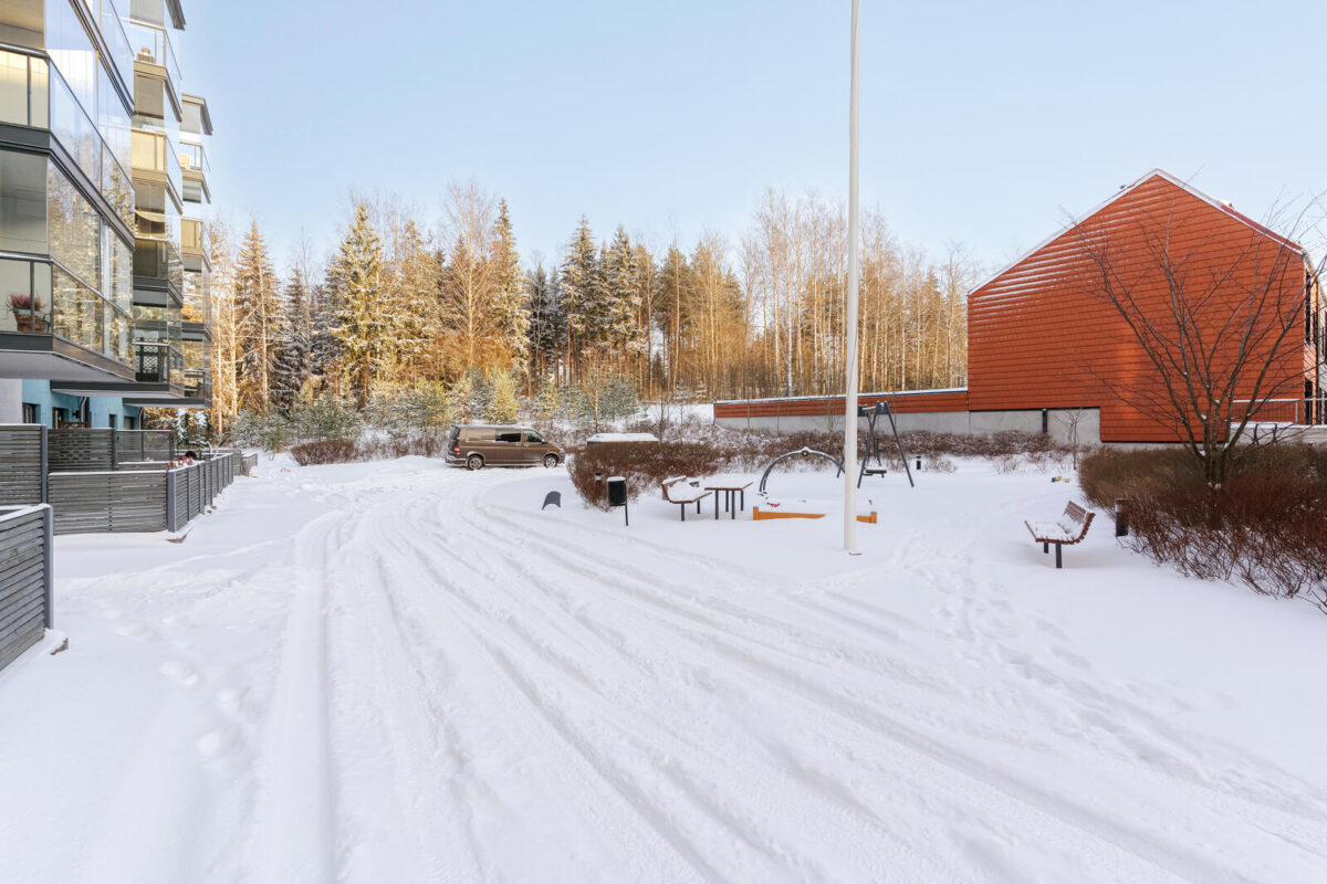Jakomäen ostoskeskuksen palvelut sijaitsevat noin kilometrin päässä. Lähimmälle bussipysäkille on lyhyt kävelymatka, ja yhteydet Helsingin keskustaan ovat sujuvat. Autoilijalle sijainti tarjoaa nopeat yhteydet Lahdenväylälle ja Kehä III:lle. Läheiset ulkoilu- ja liikunta-alueet täydentävät asumisen kokonaisuutta.