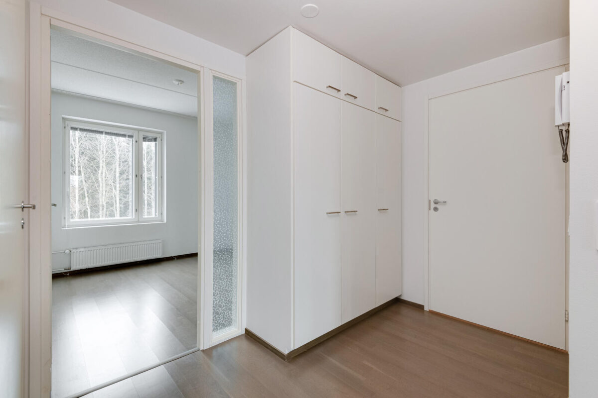 Tämä viihtyisä kerrostaloasunto tarjoaa toimivan pohjaratkaisun ja omat rauhalliset tilat kahdelle. Asunnon lattioissa on kaunis lautaparketti, ja kylpyhuoneen neutraalin sävyinen keraaminen laatta tuo tilaan ajattomuutta ja helppohoitoisuutta.