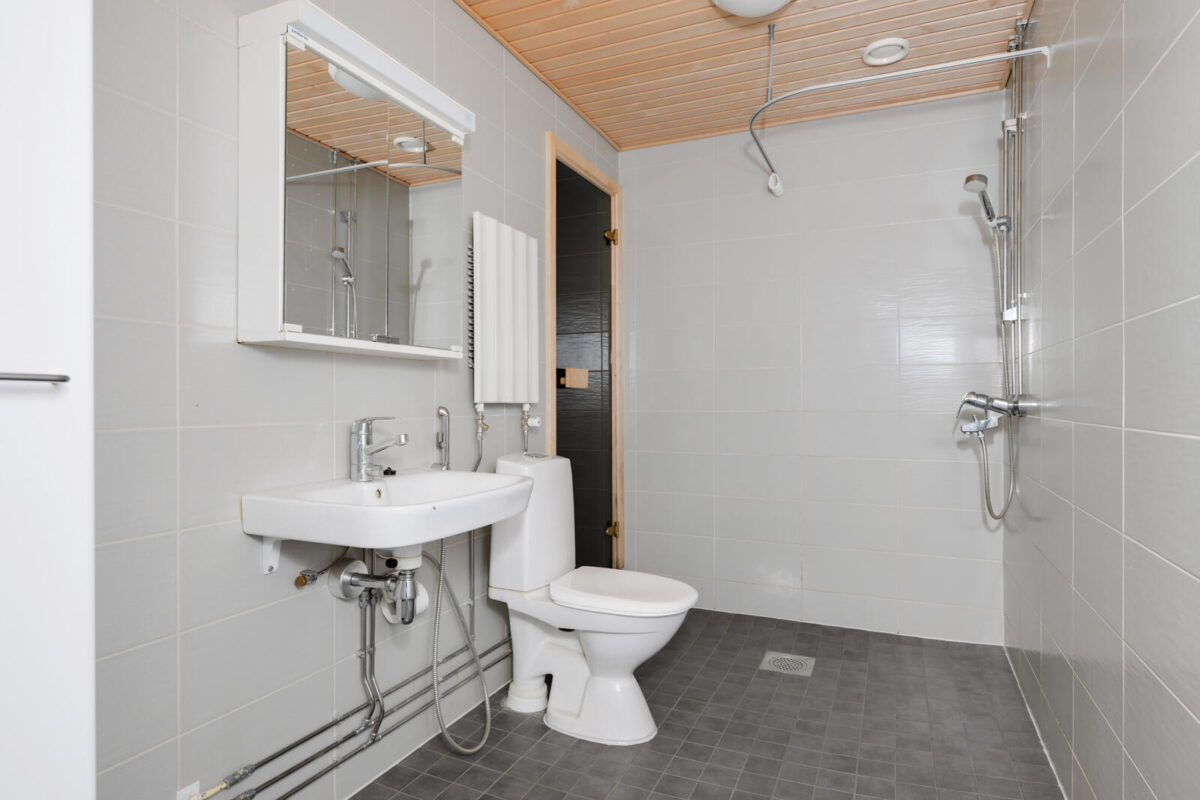 Huomaathan, että kohteen esitteen pohjapiirustuksissa kaikkiin asuntoihin on merkitty sauna. Huoneistoissa B27, B32 ja B38 on kuitenkin saunan kohdalla vaatehuone.