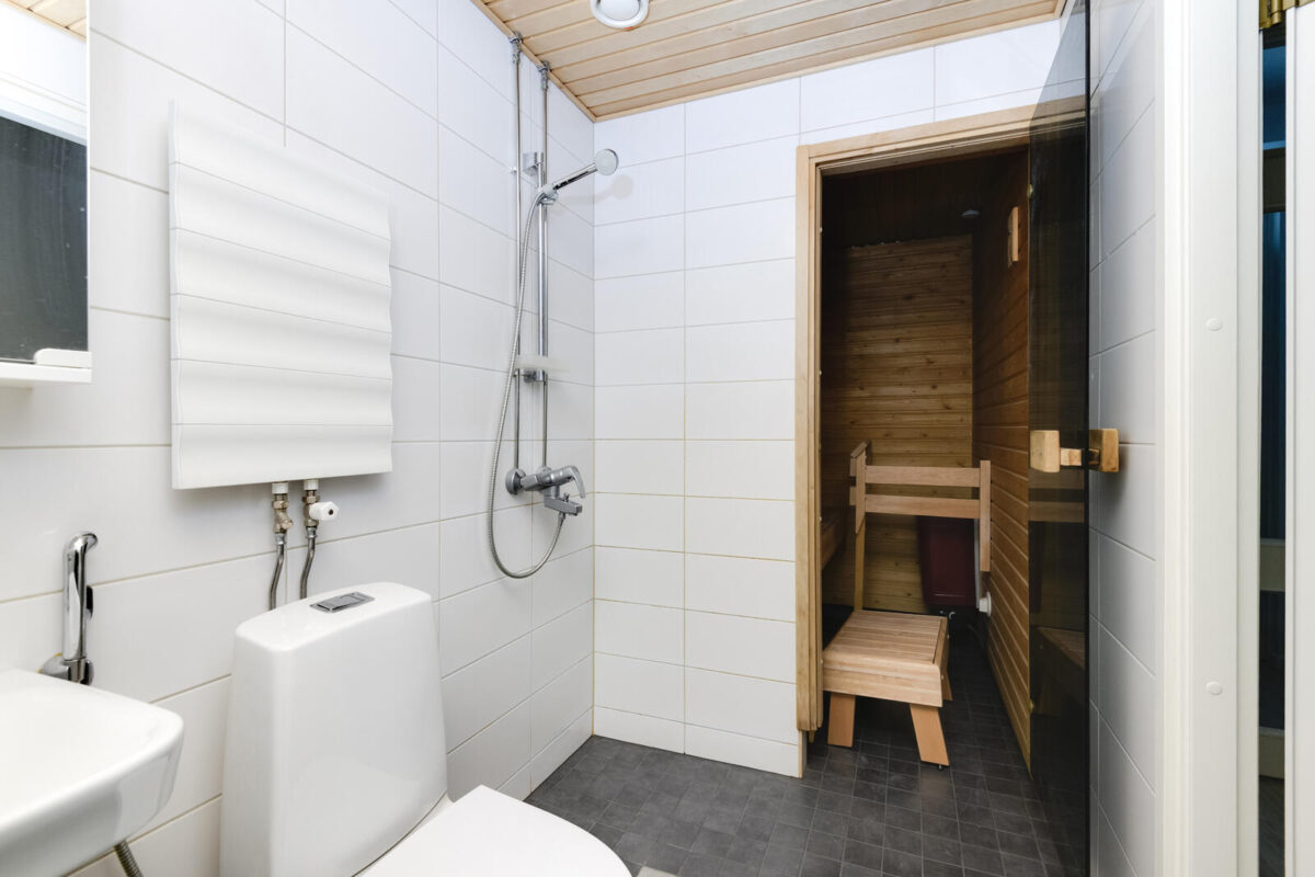 Huomaathan, että kohteen esitteen pohjapiirustuksissa kaikkiin asuntoihin on merkitty sauna. Huoneistoissa B27, B32 ja B38 on kuitenkin saunan kohdalla vaatehuone.