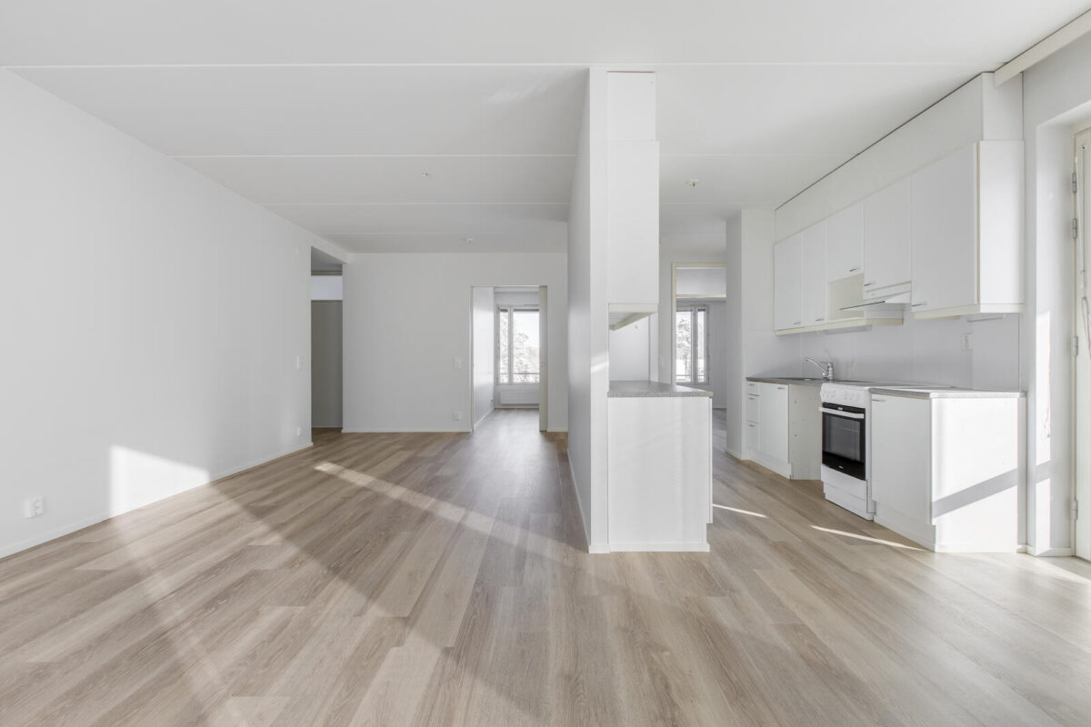 Osa asunnoista on 3 – 4 huoneen asuntoja, eli ne on muunnettavissa tai jo muunnettu neljän huoneen asunnoksi.
