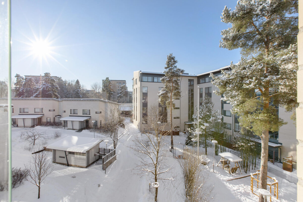 Yhteisissä tiloissa on pesutupa, kuivaushuone ja kerhotila sekä pihalla leikkipaikka lapsille.