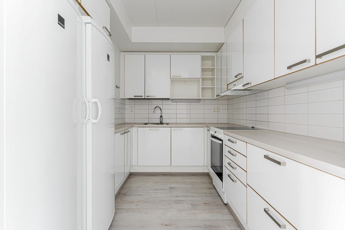 Keittiö on avokeittiö olohuoneen yhteydessä, mikä luo avaran ja toimivan kokonaisuuden arkeen ja yhdessäoloon.