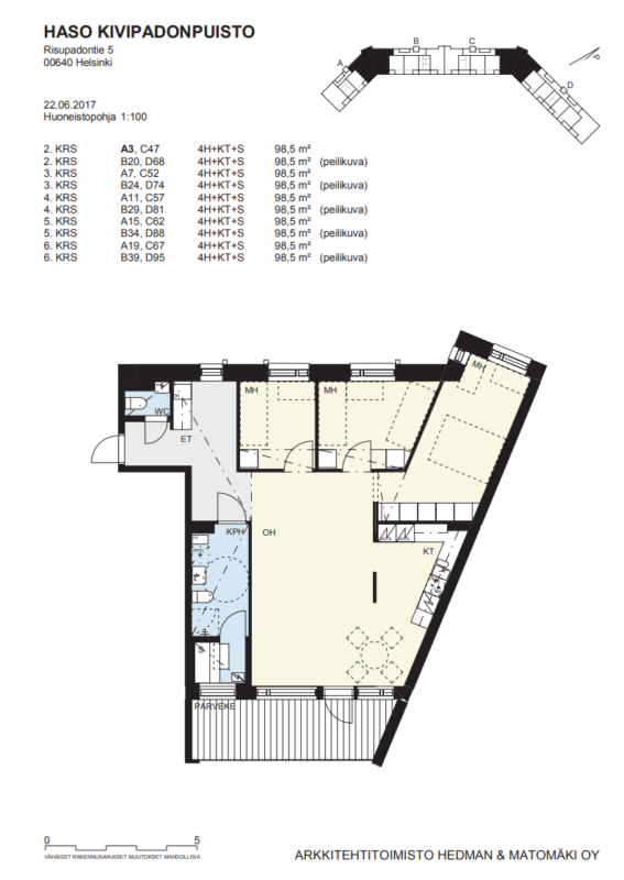 | Huoneistotyyppi | Pinta-ala m2 | Asuntoja | Vastike €/kk |