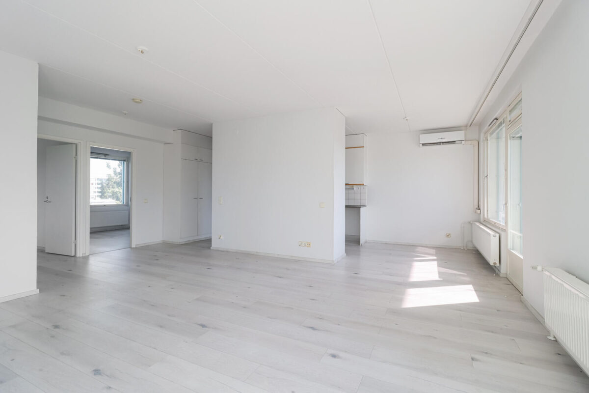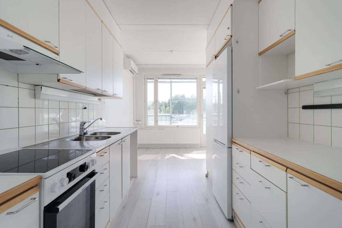 Asunnon sydän on suuri olohuone, joka yhdistyy luontevasti keittiöön ja kutsuu viettämään yhteisiä hetkiä. Kolme makuuhuonetta tarjoavat jokaiselle oman rauhallisen tilan, ja säilytysratkaisut on mietitty käytännöllisesti arkea helpottamaan.