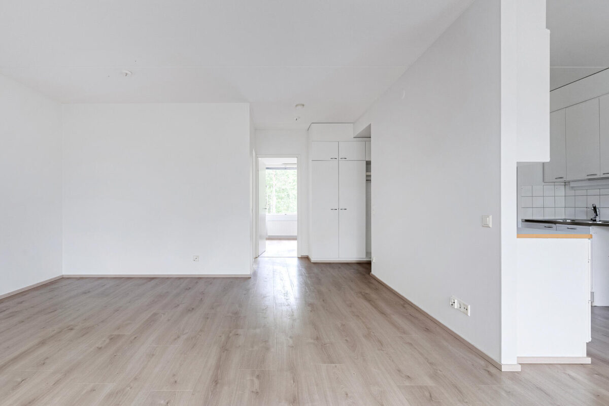 Olohuone ja keittiö muodostavat viihtyisän kokonaisuuden, jossa on helppo viettää yhteisiä hetkiä tai järjestää rauhallinen paikka keskittymistä vaativille askareille. Kaksi makuuhuonetta tuovat joustavuutta – toinen sopii mainiosti lastenhuoneeksi, vierashuoneeksi tai omaksi työskentelyhuoneeksi.