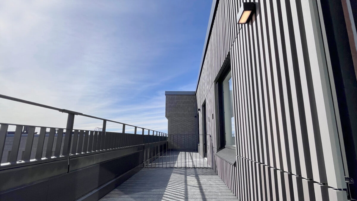 Asuntojen ulko-oleskelutiloina toimii esteettömäksi järjestettävä puoleksi lasitettu ja puoleksi avoin parveke tai ranskalainen, lasittamaton ulokeparveke. Maantasokerroksen Naurunkujalle avautuvissa asunnoissa on parvekkeen lisäksi asuntoon liittyvä ulkotila, jonne on kulku myös kadulta.