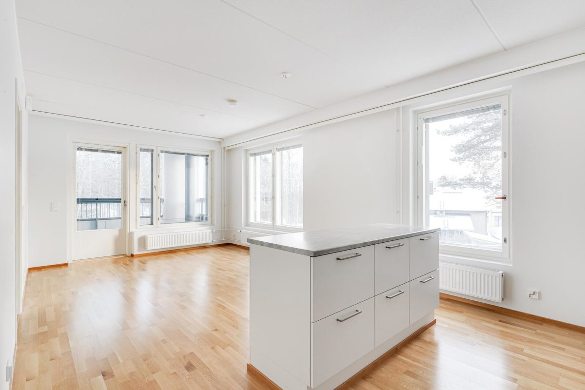 Tarjolla ensimmäisen kerroksen koti lasitetulla parvekkeella. Asuinhuoneissa, eteisessä ja keittiössä on kaunis parkettilattia. Kylpyhuoneessa, WC-tiloissa ja saunassa on keraamiset laatat. Kylpyhuoneessa on allas- ja peilikaappi, jotka tuovat lisää säilytystilaa.