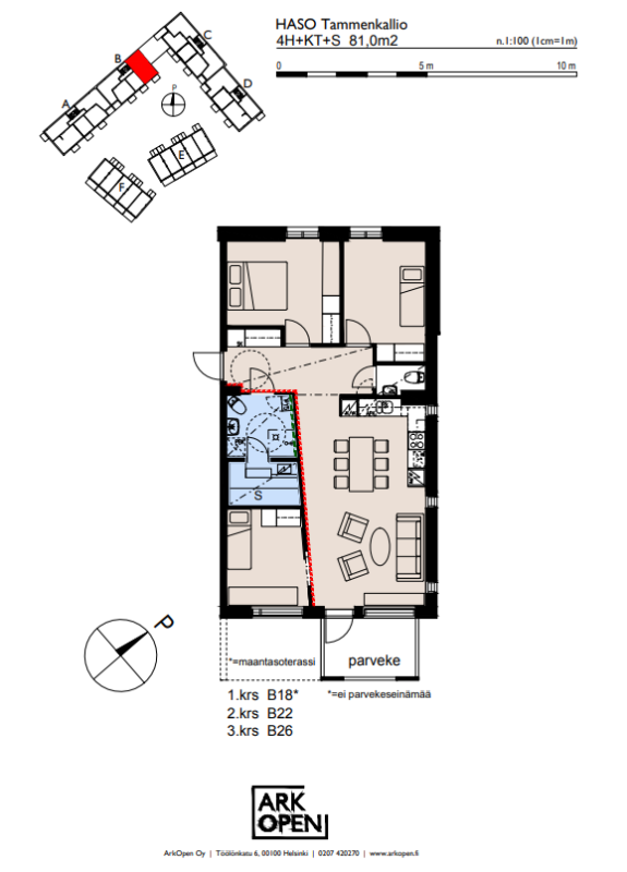 Suuri olohuone ja keittiö muodostavat kodin sydämen, jossa on tilaa yhdessäololle ja rentoutumiselle. Makuuhuoneet sijoittuvat rauhallisesti omiin kulmiinsa, ja sauna tuo arkeen ripauksen luksusta. Parveke avaa näkymän kotoisaan ympäristöön ja kutsuu nauttimaan ulkoilmasta omassa rauhassa.