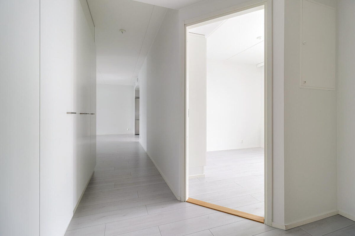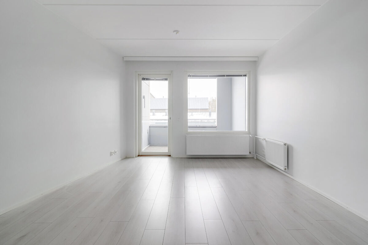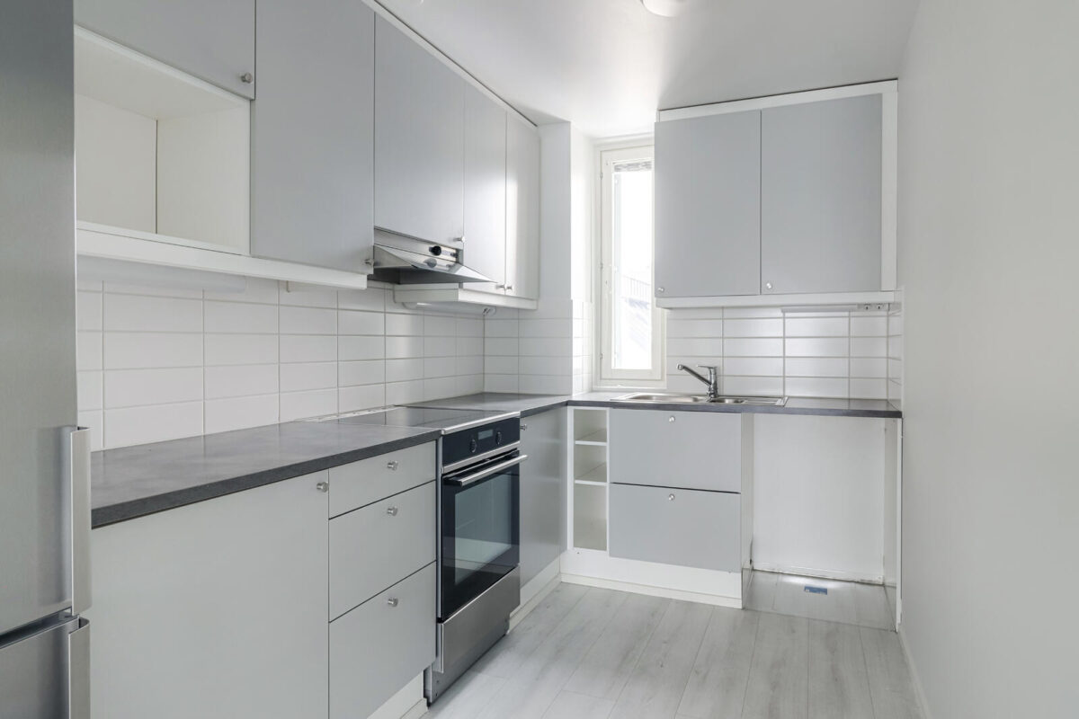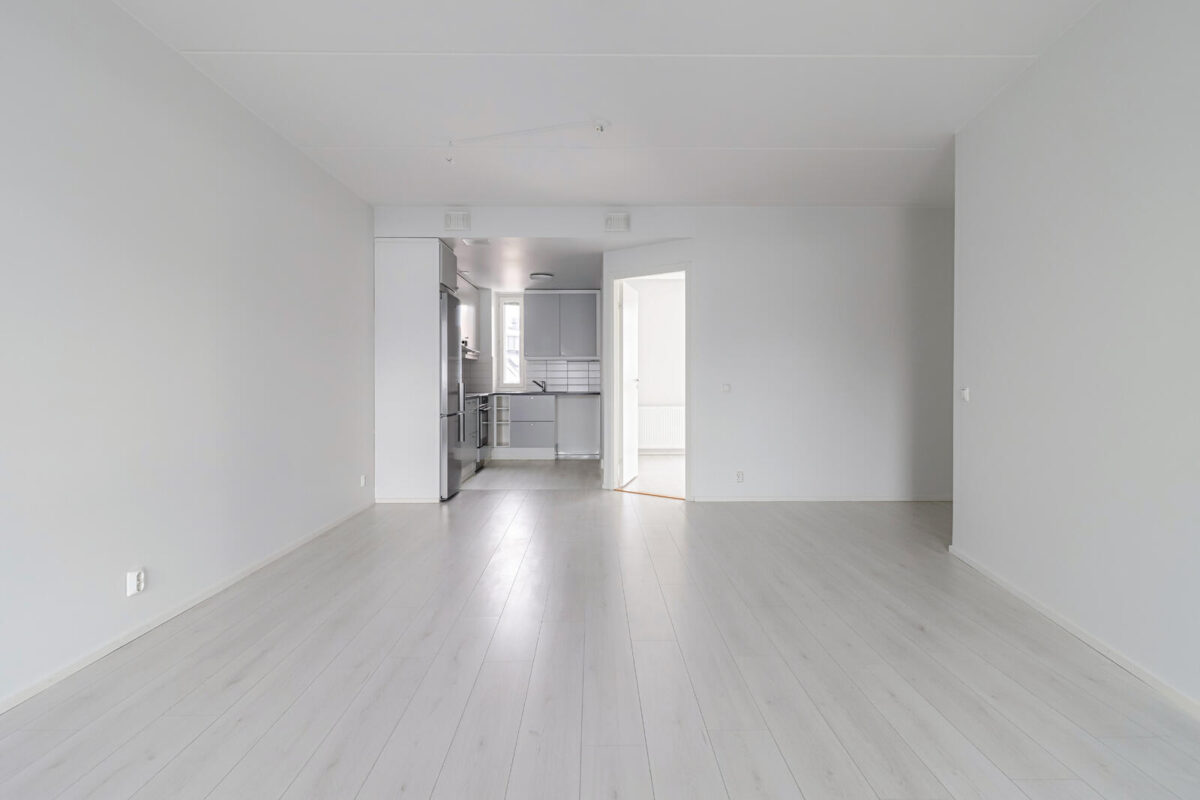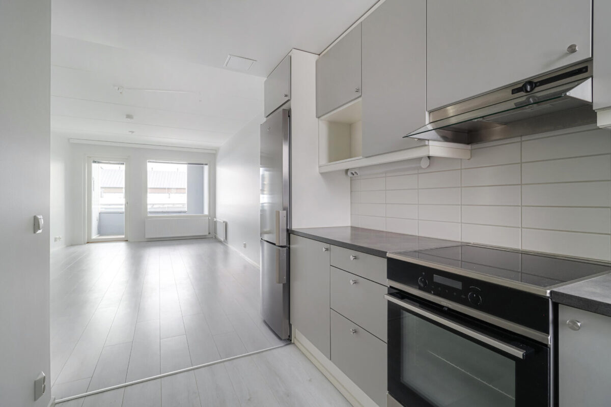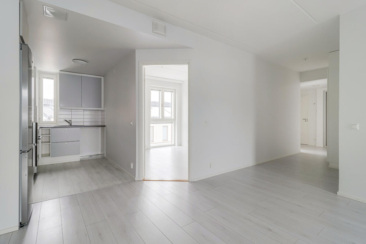 Asunnossa on toimiva pohjaratkaisu, ja huonekalut on helppo sijoitella. Keittotila sijaitsee kätevästi olohuoneen päädyssä, ja makuuhuoneet ovat vierekkäin. Valoa tulee kahdesta ilmansuunnasta.