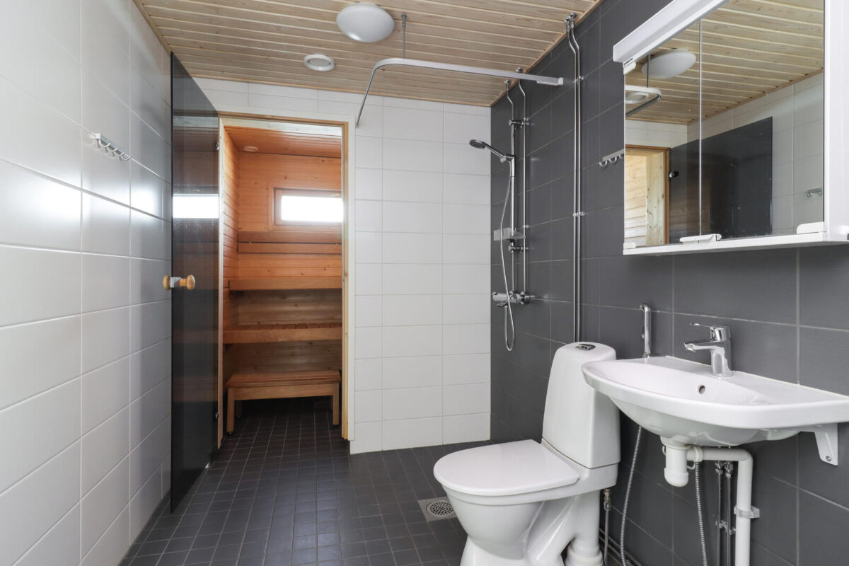Asunnon ensimmäisessä kerroksessa sijaitsevat oleskelutilat, ja makuuhuoneet on sijoitettu käytännöllisesti toiseen kerrokseen. Asunnossa on oma sauna, lattiamateriaali on laminaatti ja märkätilat on laatoitettu keraamisella laatalla.
