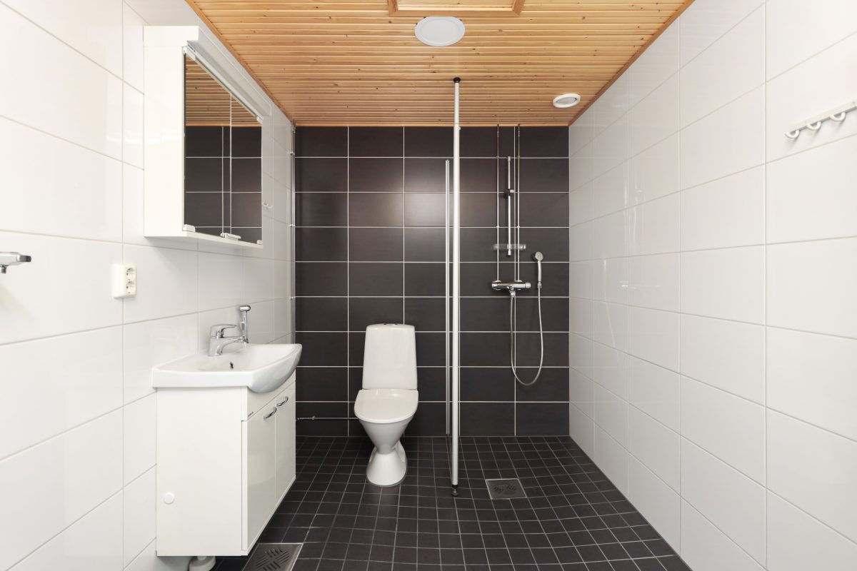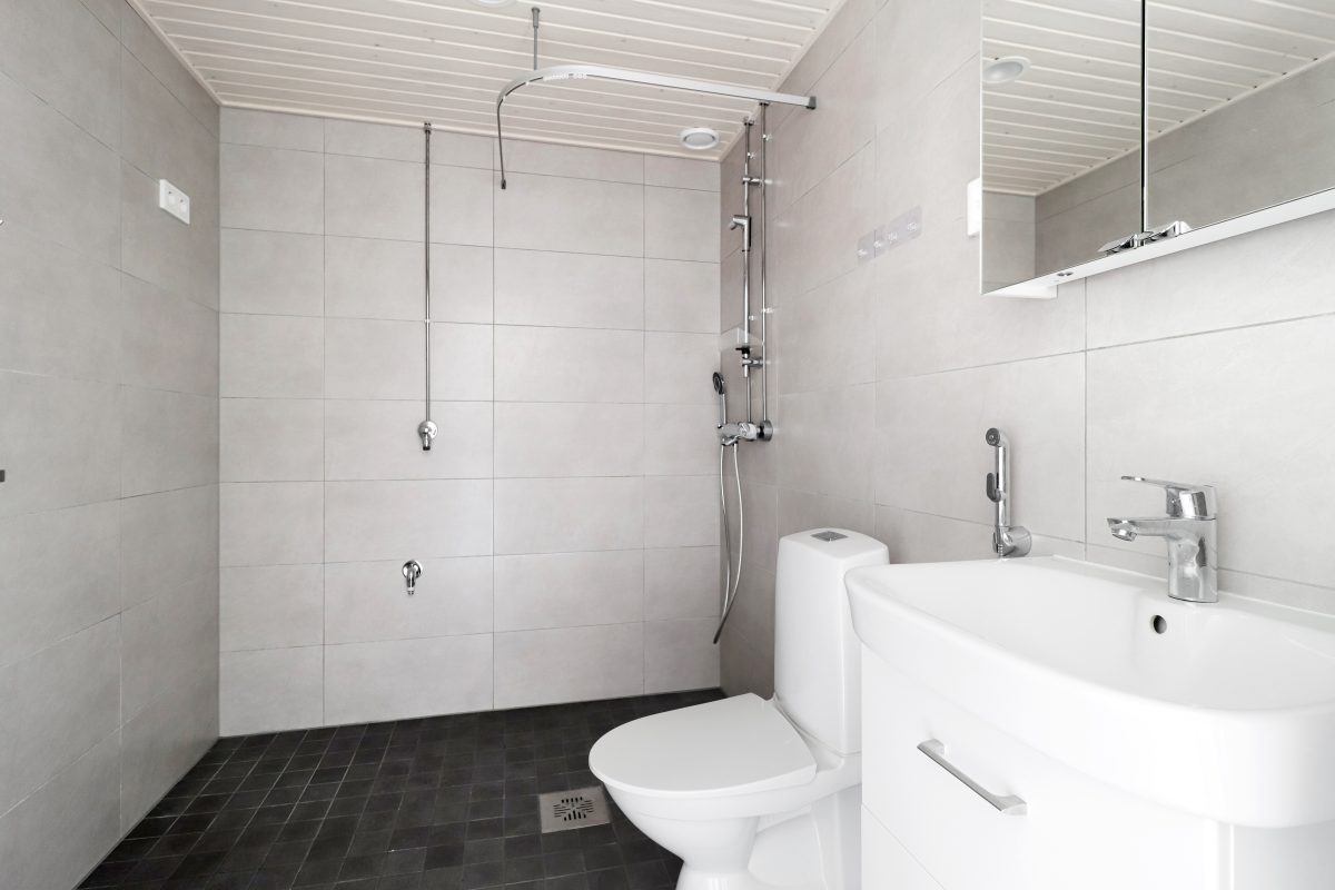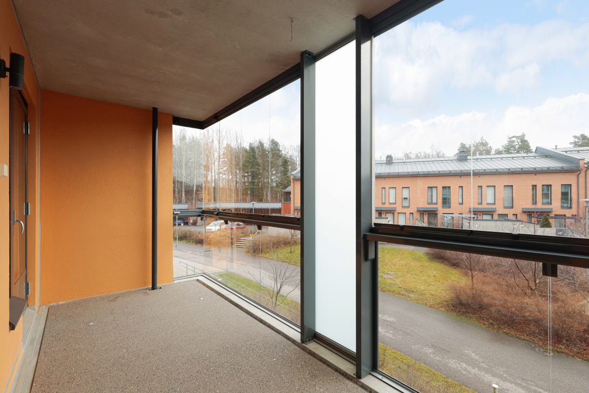 Asunnossa on laminaattilattiat, kylpytiloissa keraaminen laatoitus sekä lasitettu parveke. Keittiö on avokeittiö.
