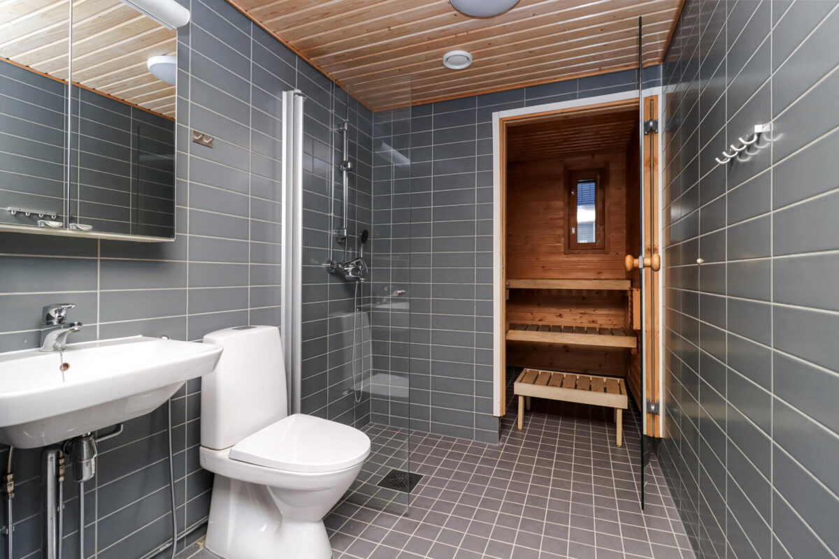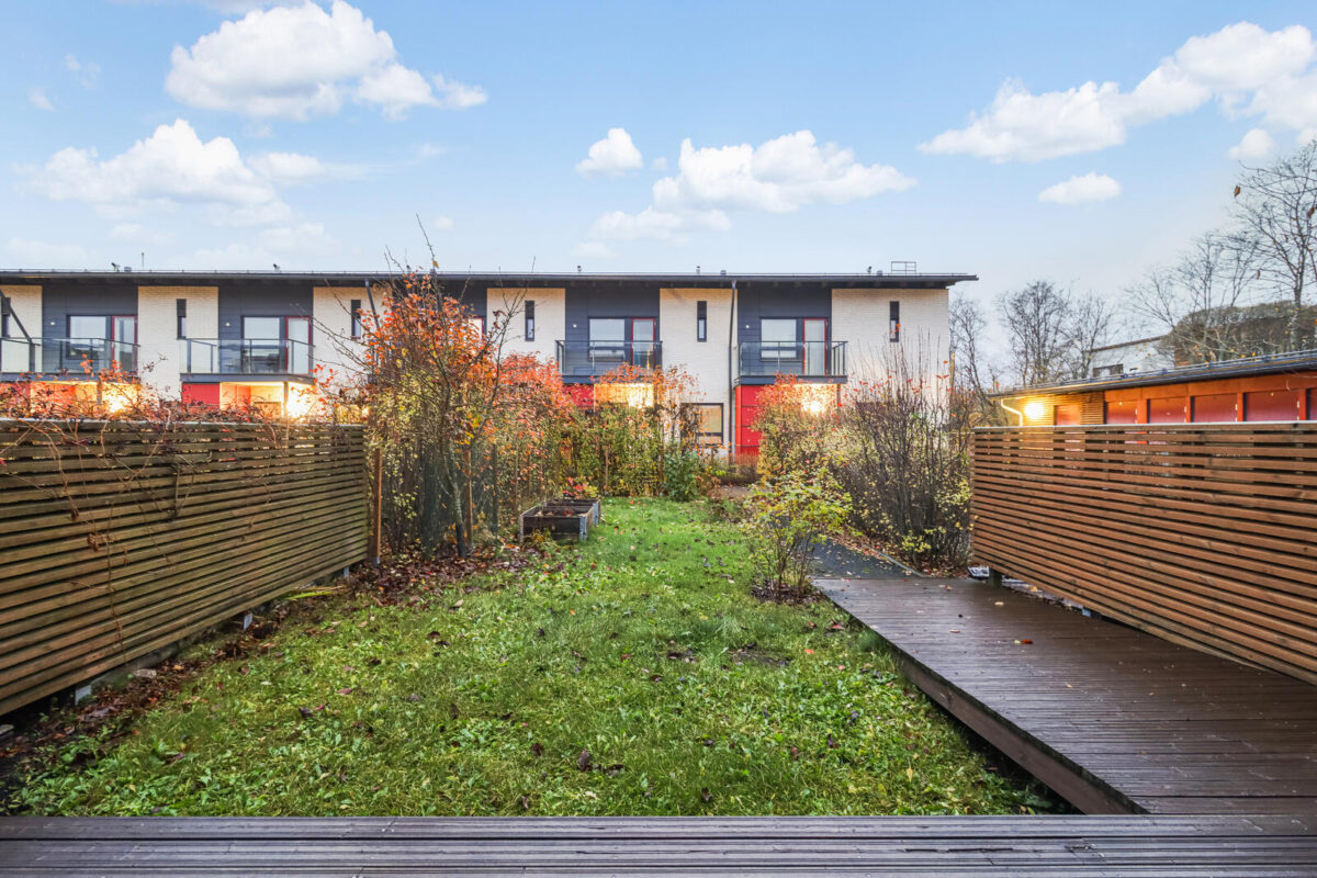 Asunnon käytännöllisyyttä lisäävät oma sauna, vaatehuone sekä erillinen varasto, jotka tarjoavat hyvin säilytystilaa. Oma piha toimii luontevana jatkeena sisätiloille ja tarjoaa mukavan paikan ulkona oleskeluun. Selkeä kokonaisuus tekee arjesta vaivatonta ja asumisesta miellyttävää.